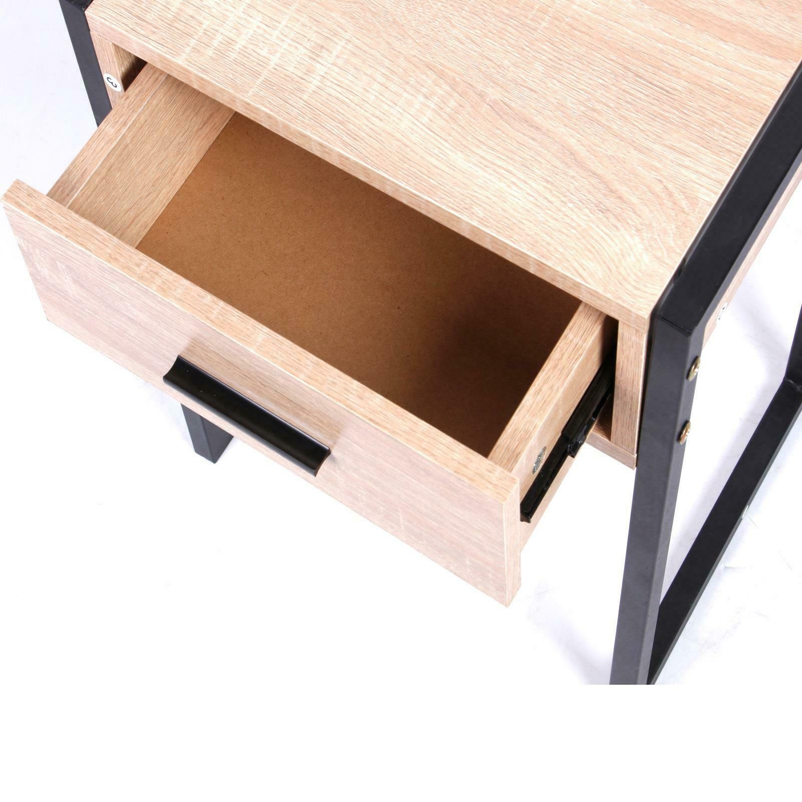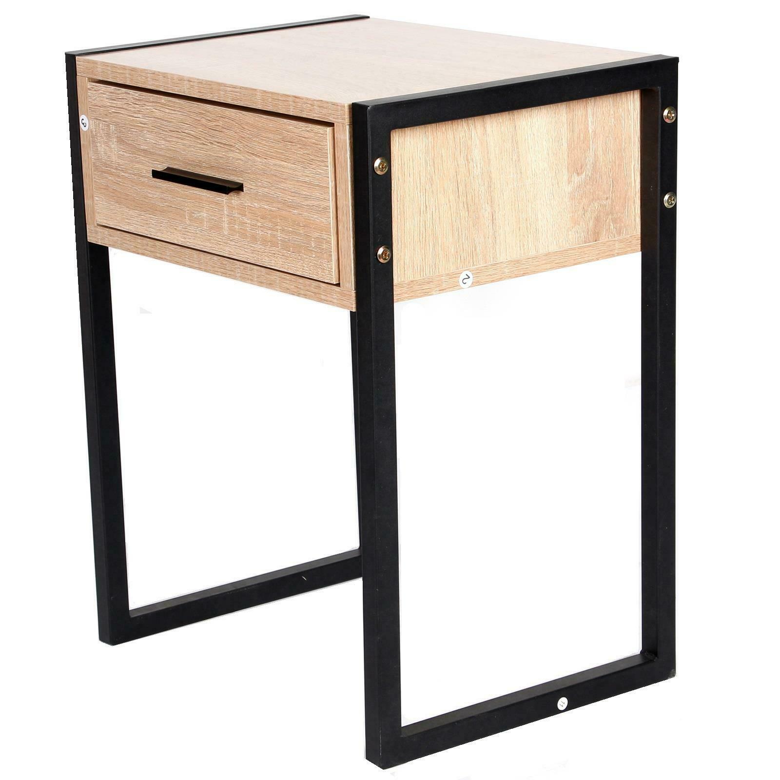 Gr8 Home Wooden Bedroom Bedside Table Cabinet Lamp Night Stand Modern Contemporary Furniture With Storage Drawer Black Metal Legs AC007