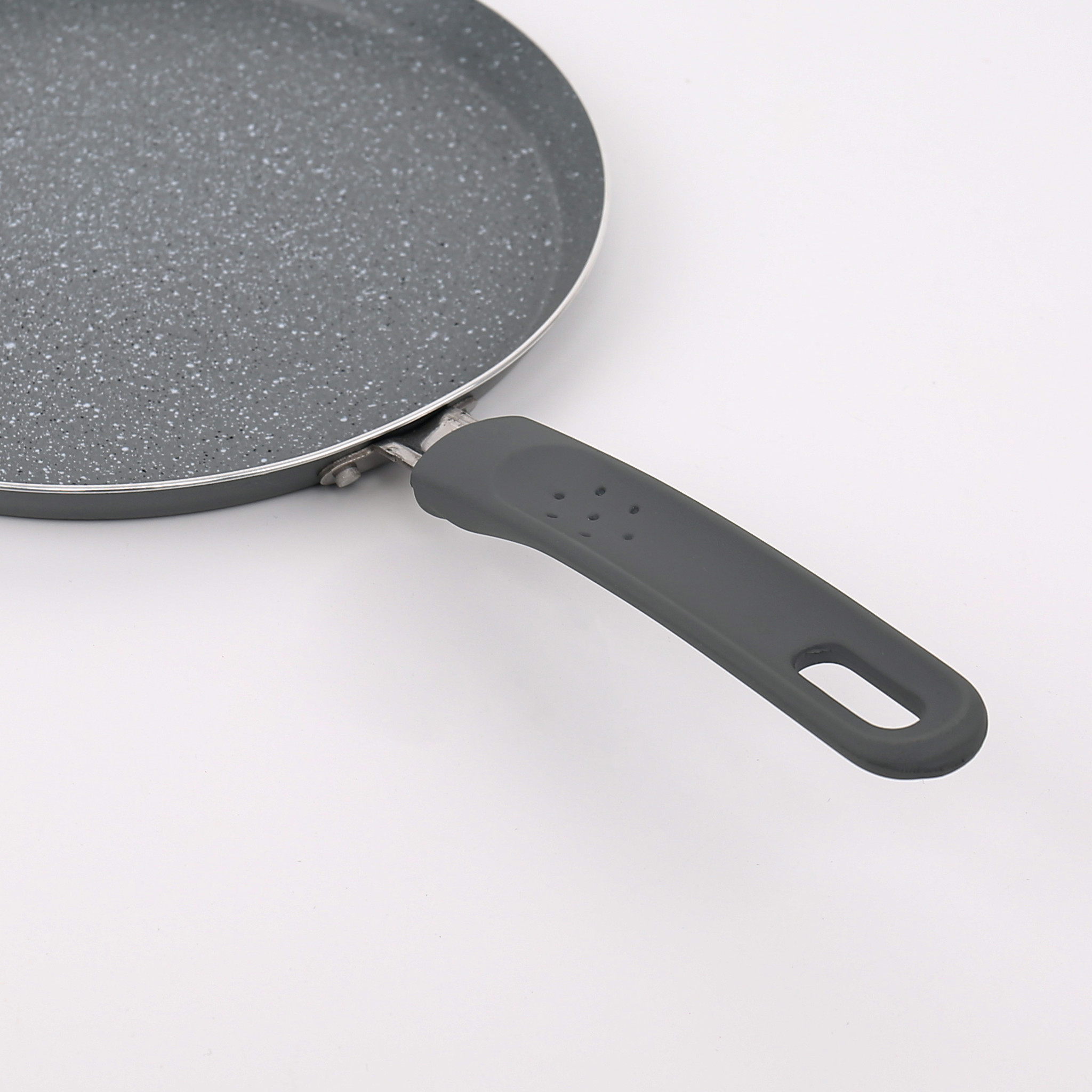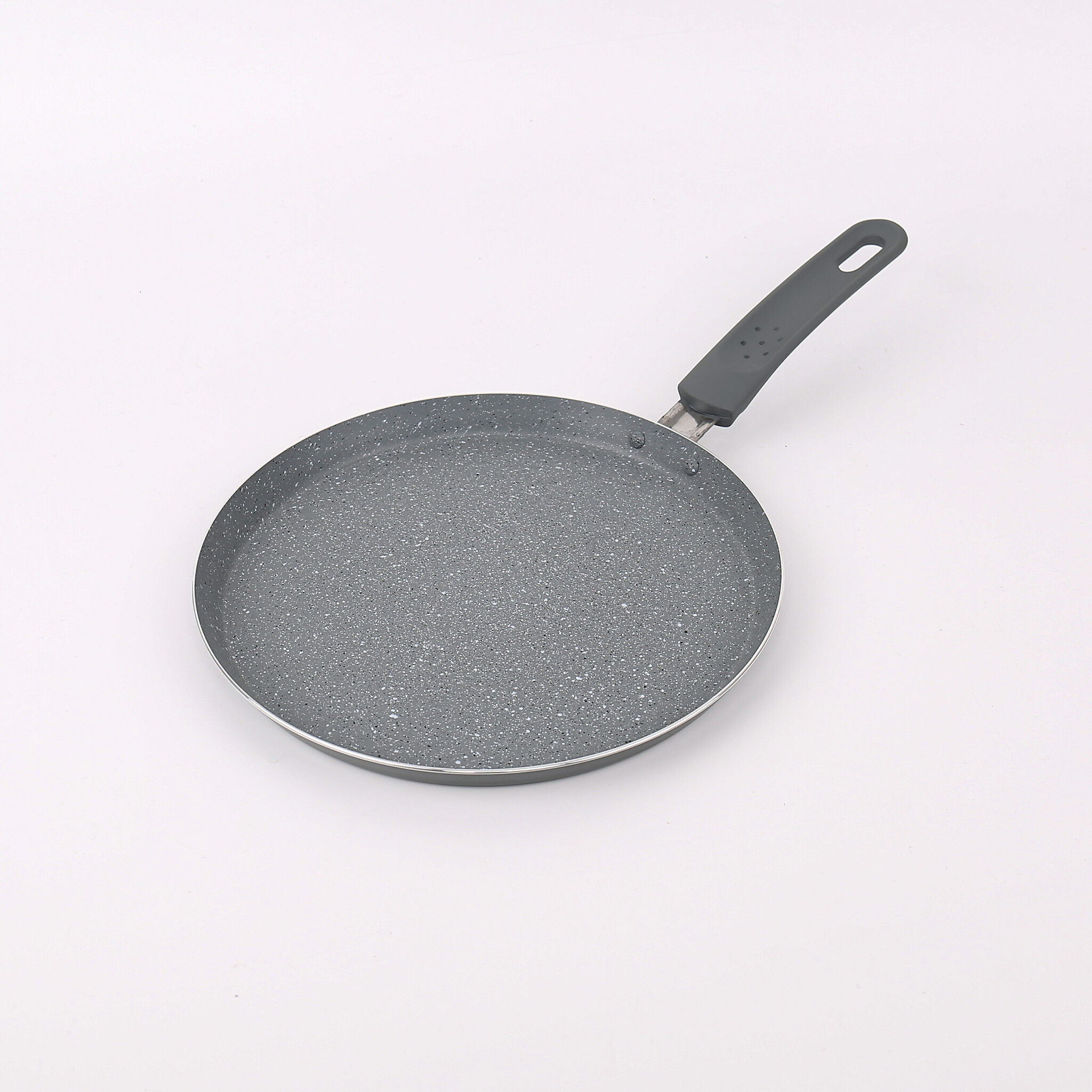 Gr8 Home Aluminium Grey Non Stick Crepe Pan Marble Coated Roti Dosa Tawa Pancake Maker and Spatula Set