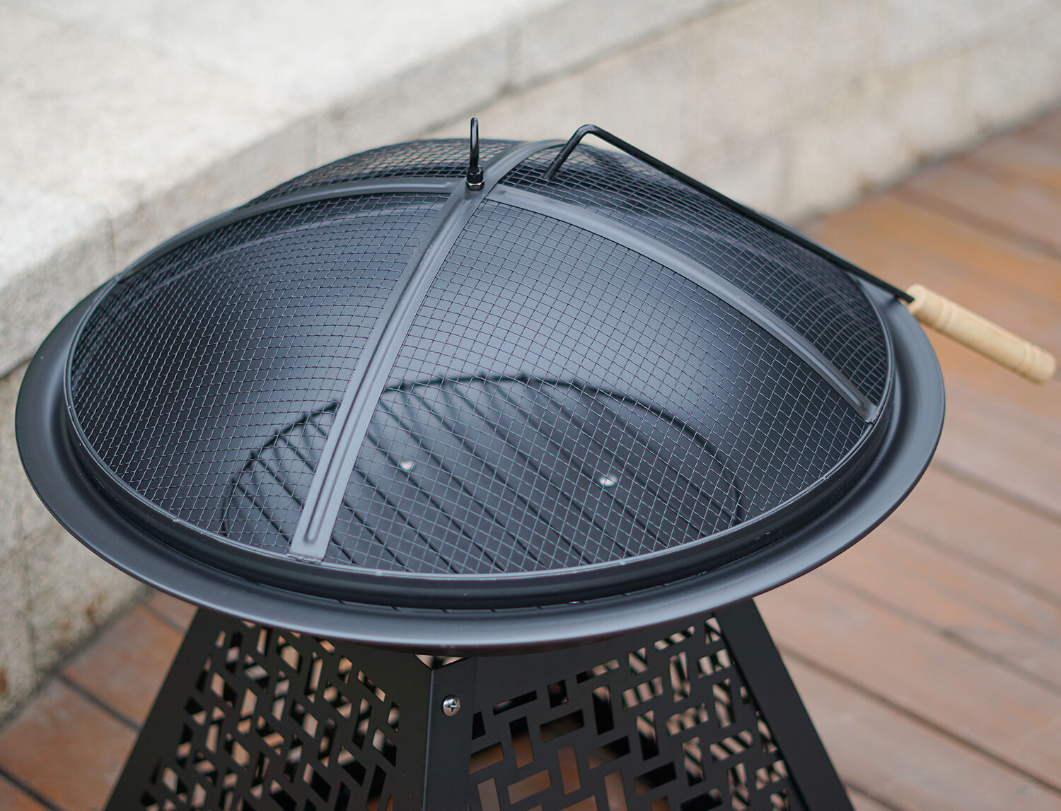 The Round Fire Pit with Lid is a robust but lightweight fire pit which features sturdy decorative base, along with a mesh lid to help keep the fire contained. The Round Fire Pit can be used with fuels such as Wood, Logs, Charcoal and more and is an excellent heat conductor. This makes the fire pit great for outdoor garden parties, BBQ’s, Camping Trips and late evenings with family and friends. Along with easy to read instructions is a Poker and all the required screws and fittings which make for a quick and easy assembly, and can just as easily be dismantled. Perfect for storing the fire pit away when not in use or for packing up on camping trips.