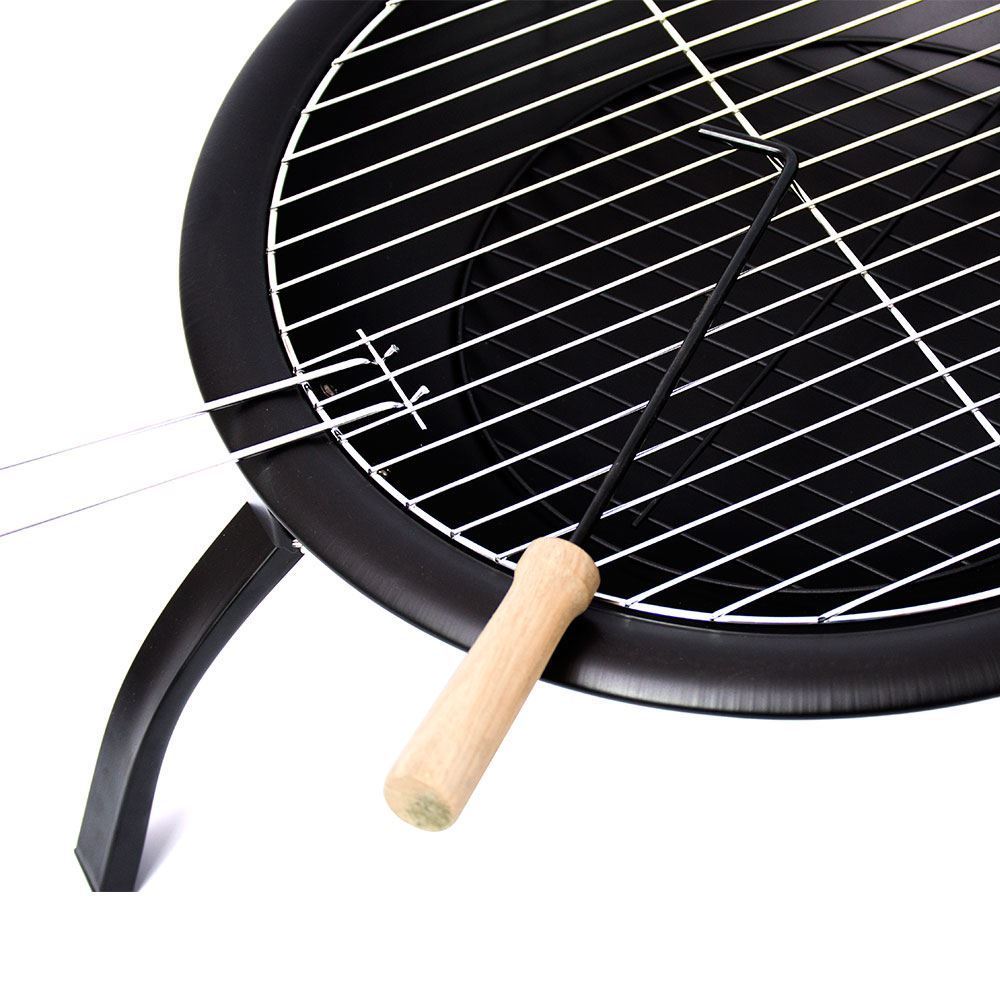 Gr8 Garden Round Portable Black Fire Pit Outdoor Wood Log Burner BBQ Patio Heater Metal Camping Brazier With Foldable Legs Lid And Poker