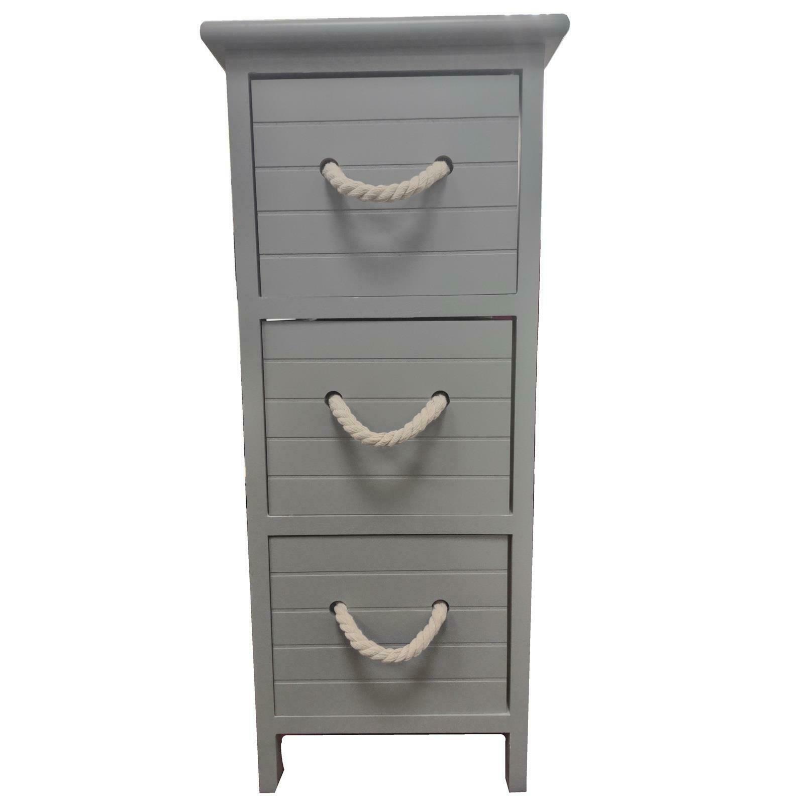 Gr8 Home Nautical 3 Tier Wooden Grey Bathroom Cabinet Cupboard Storage Organiser Drawers Unit Furniture