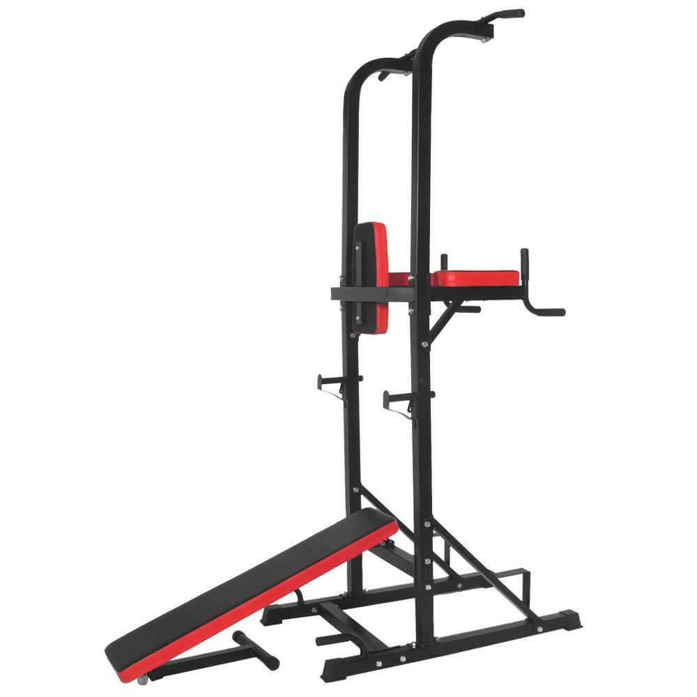 - Dip Station Chin Pull Up Bar Bench Press Power Tower Exercise Home Gym Machine