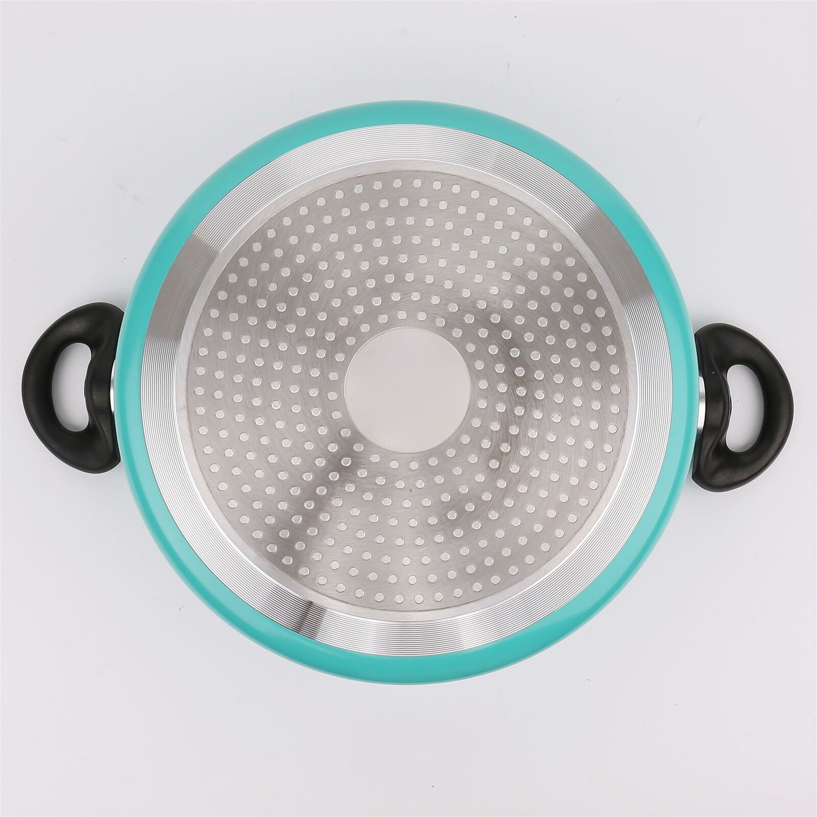 Contemporary style high Deluxe Quality 15 piece colourful Multi Coloured non stick coated saucepans, cooking pot, frying pan and utensils cookware set with Induction Hob Base cooking. This cookware set is highly durable and made with extra ordinary heavy duty material for every type of great cooking. It can be used on gas, electric, ceramic & induction counter cooktops. It has features of non-stick finish that requires no extra oil or butter when cooking. It is the must have item for contemporary modern kitchen.