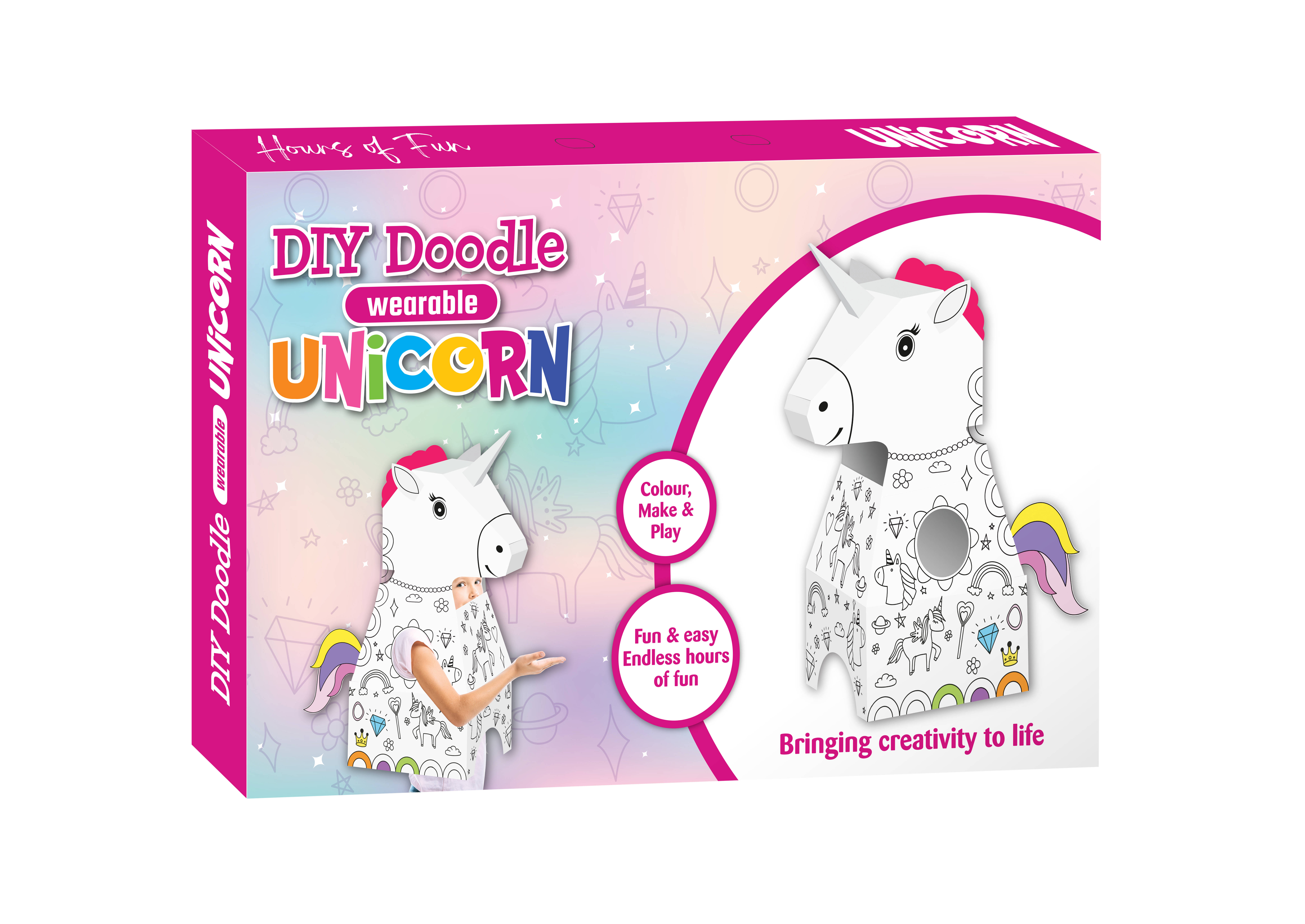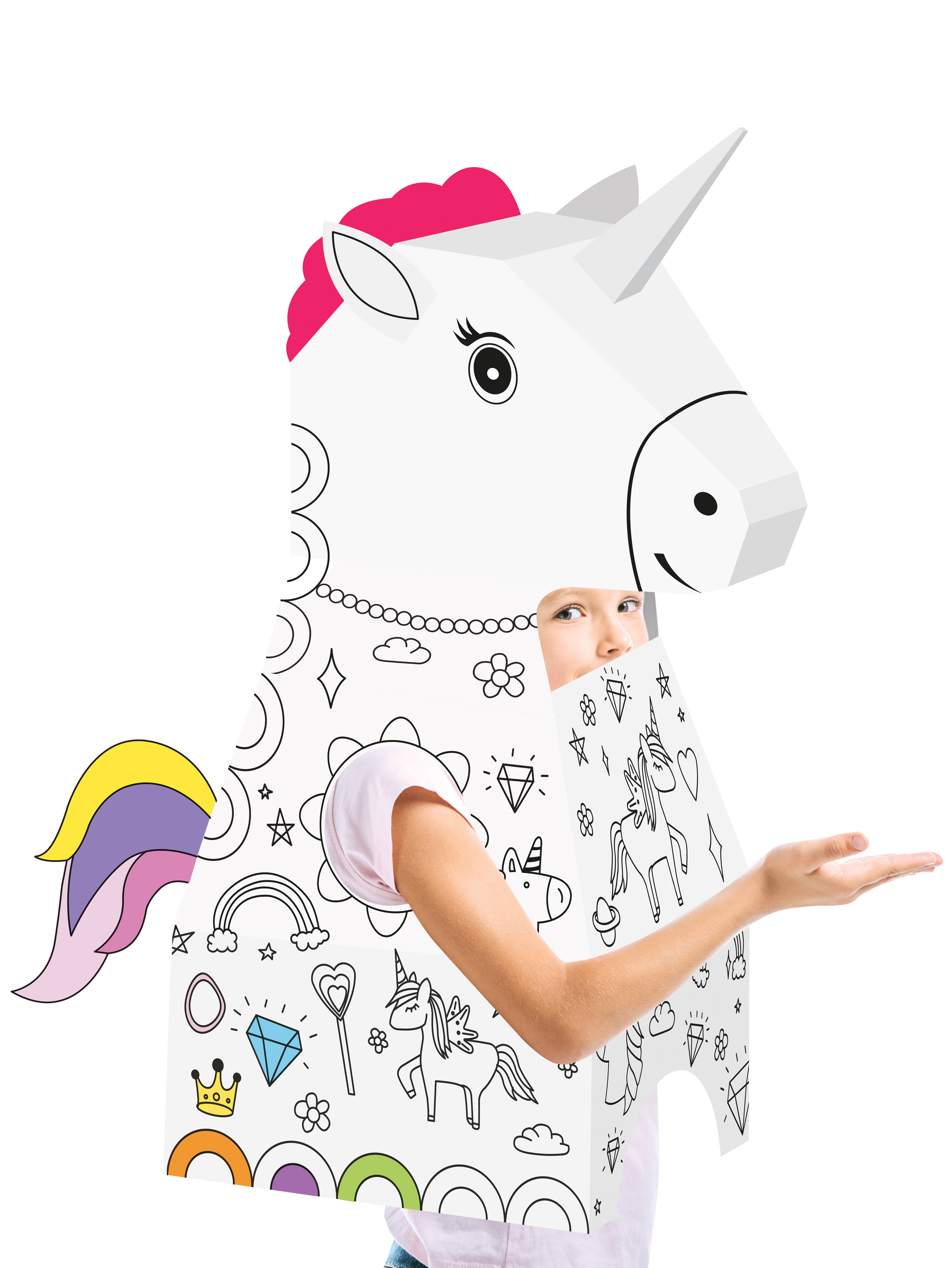 Rexco Large Colour Your Own Wearable Unicorn House Childrens Cardboard DIY Doodle Art Kids Activity Craft Pretend Play Kit