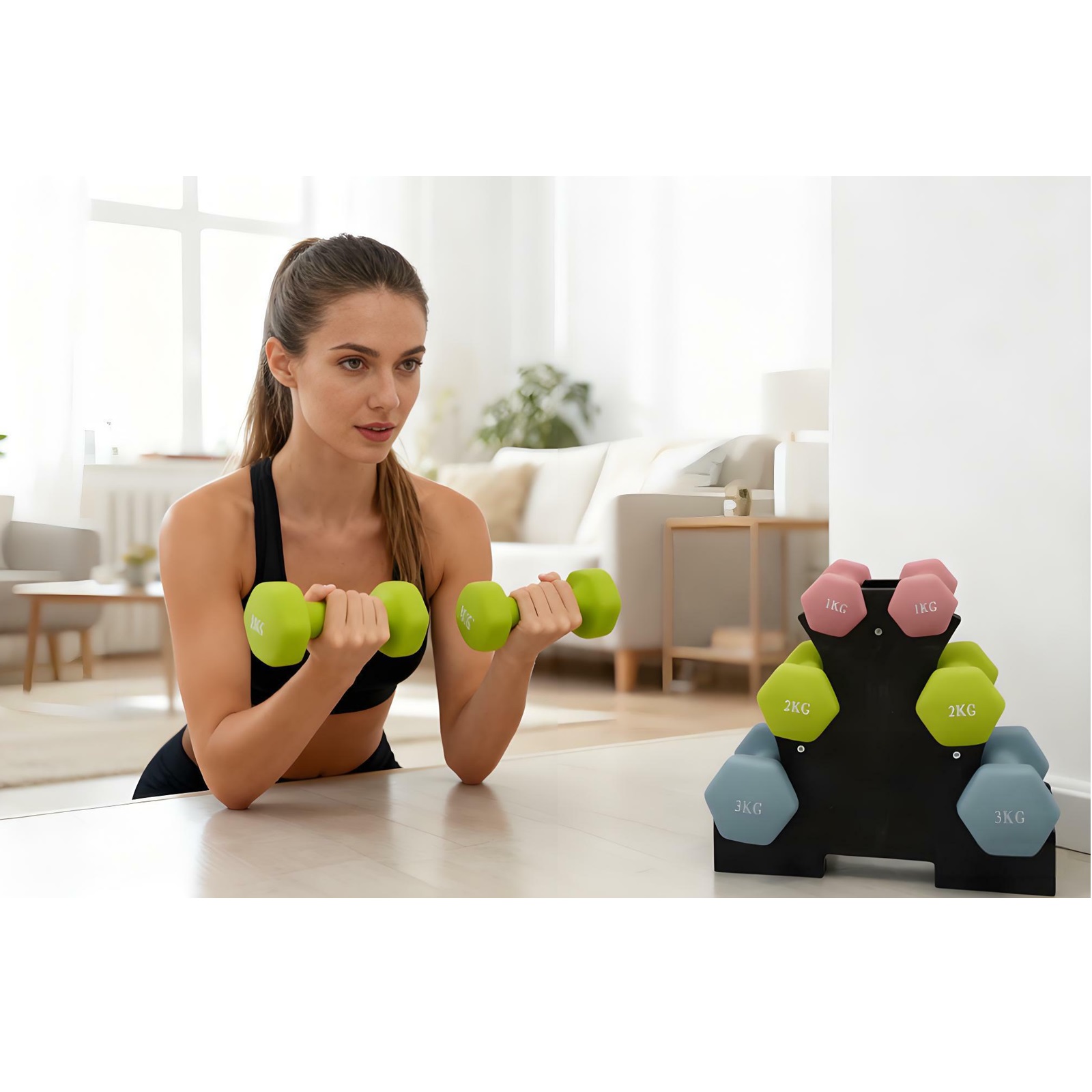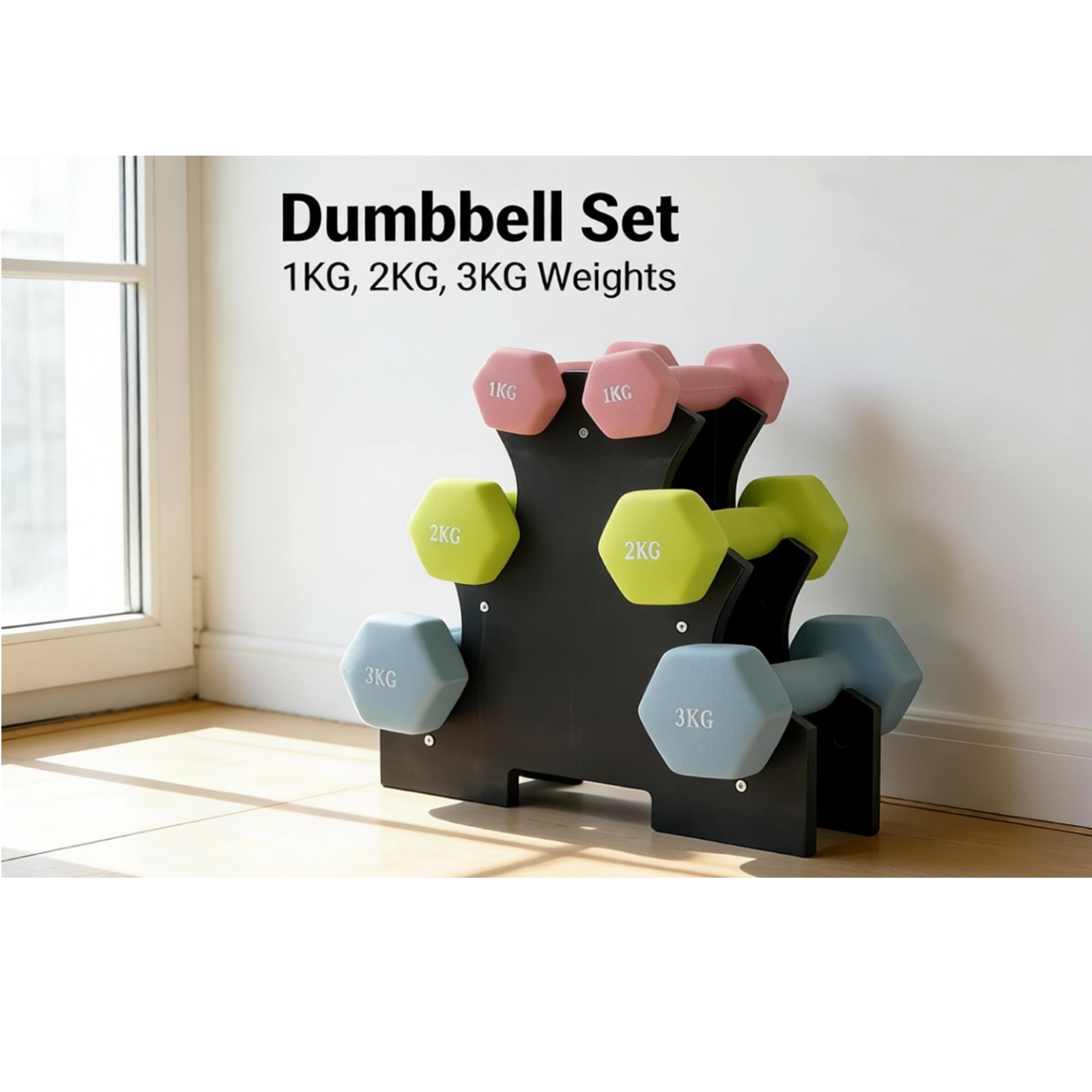 Gr8 Home 12KG Dumbbell Set Weights with Storage Stand Rack for Women’s Home Gym Fitness, Non-Slip Rubber Hex Dumbbells for Strength, Toning & Home Workouts