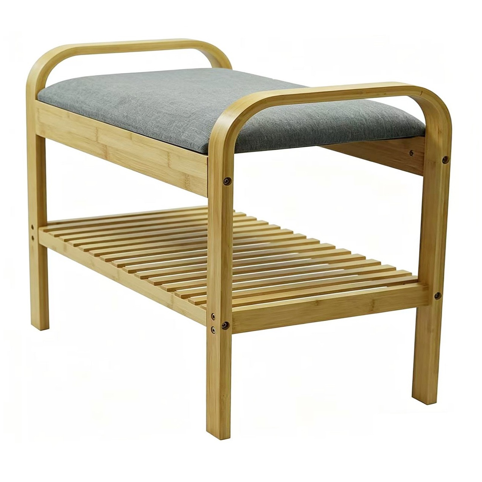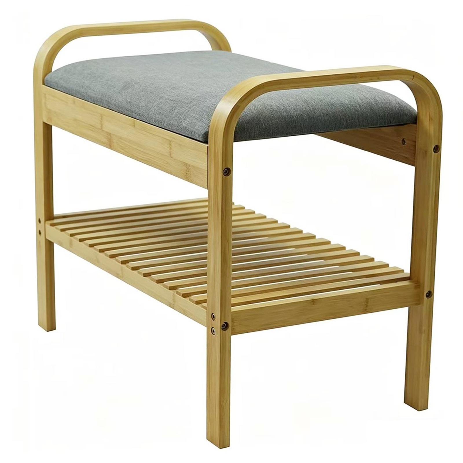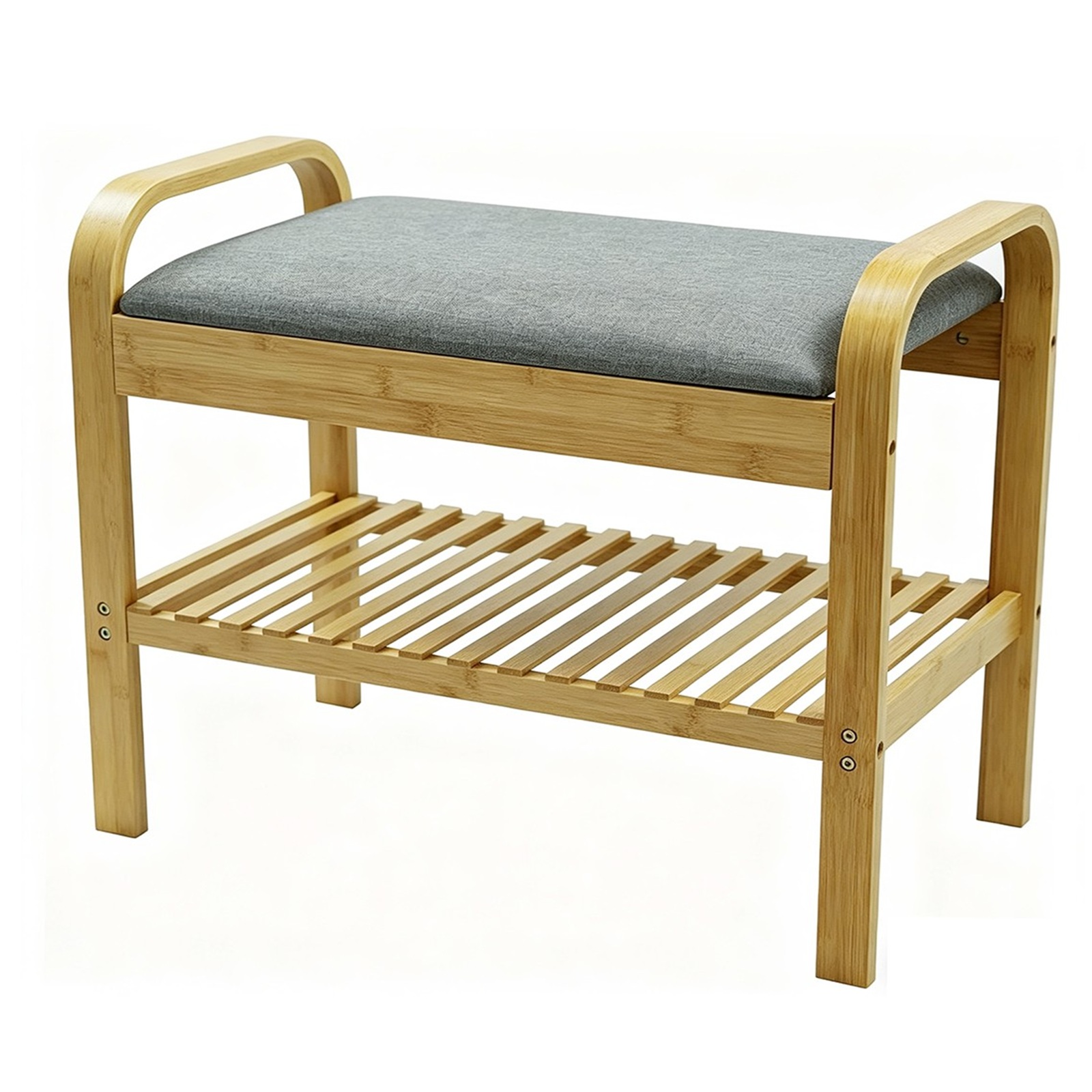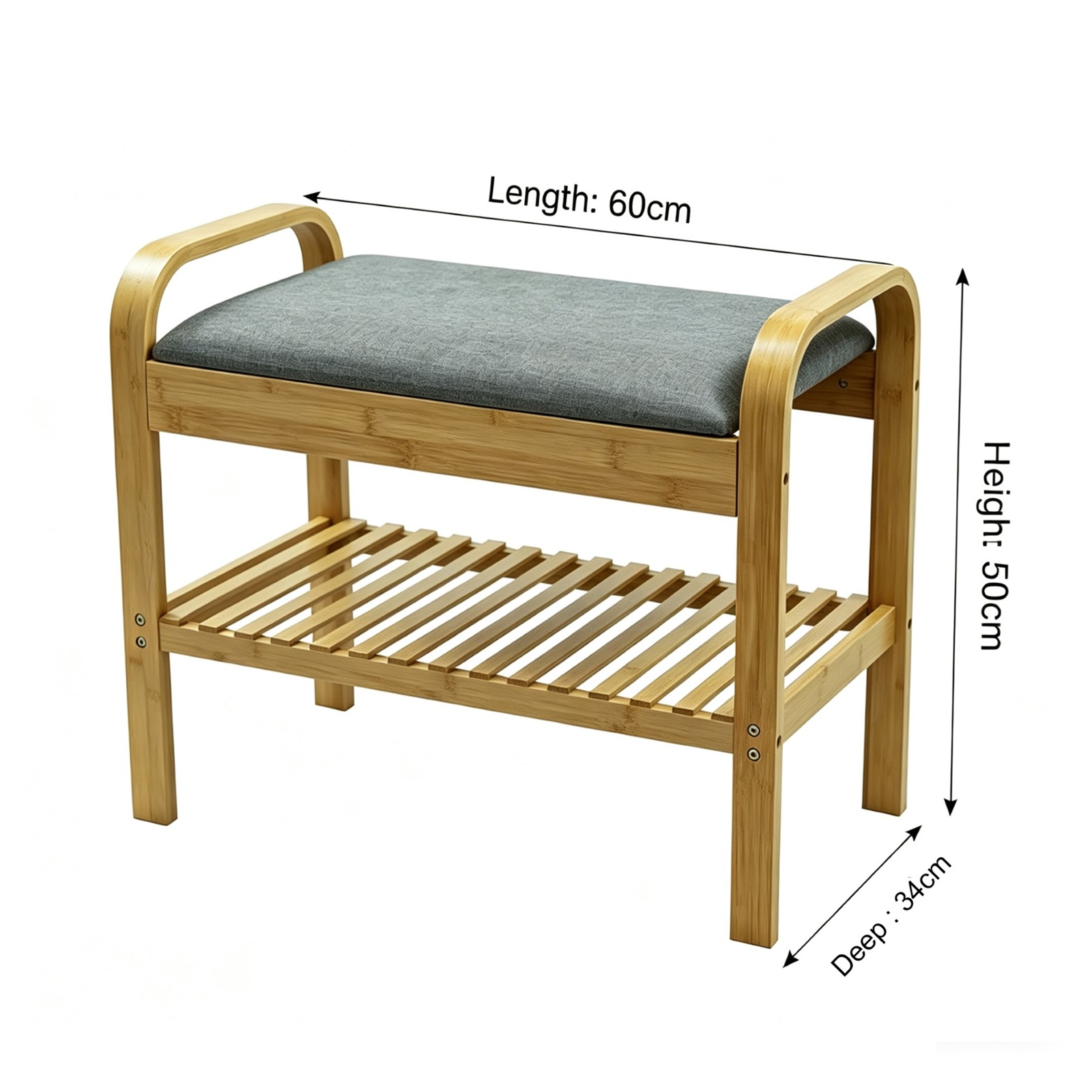 2 Tier Bamboo Shoe Rack Bench with Cushion Seat Storage Shelf Hallway Unit Stand Summary