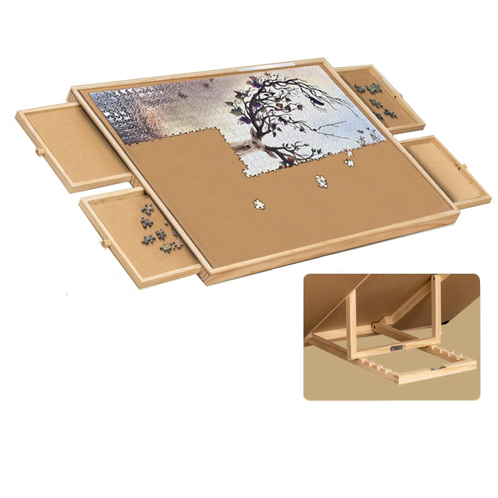- Adjustable Wooden 1000 Pcs Jigsaw Puzzle Table Easel With Tilting Rack 4 Drawers