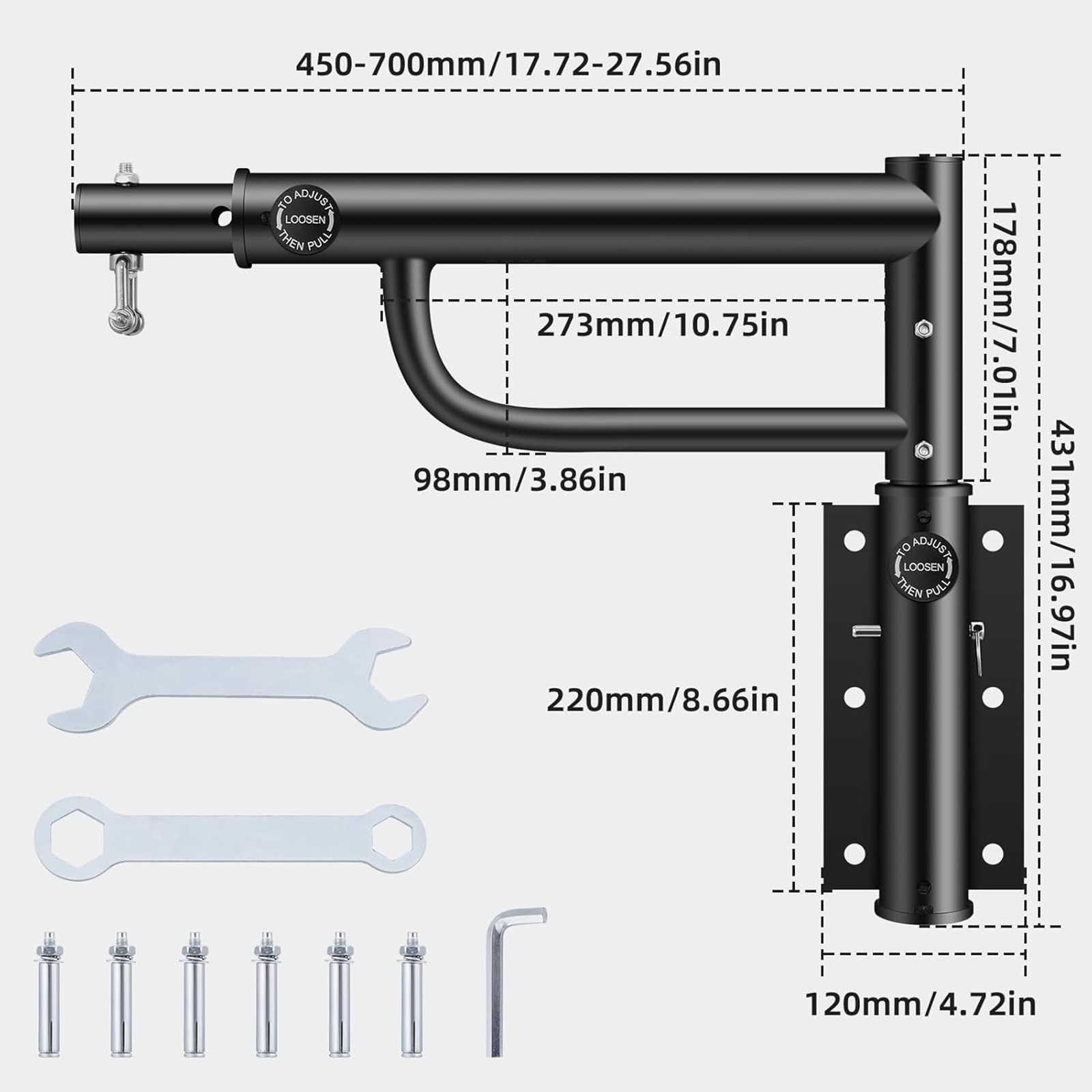 Gr8 Home Boxing Punch Bag Wall Bracket Adjustable Length Heavy Duty Steel Wall Mounted Home Gym MMA Kickboxing Punching Bag Hook Hanger Stand