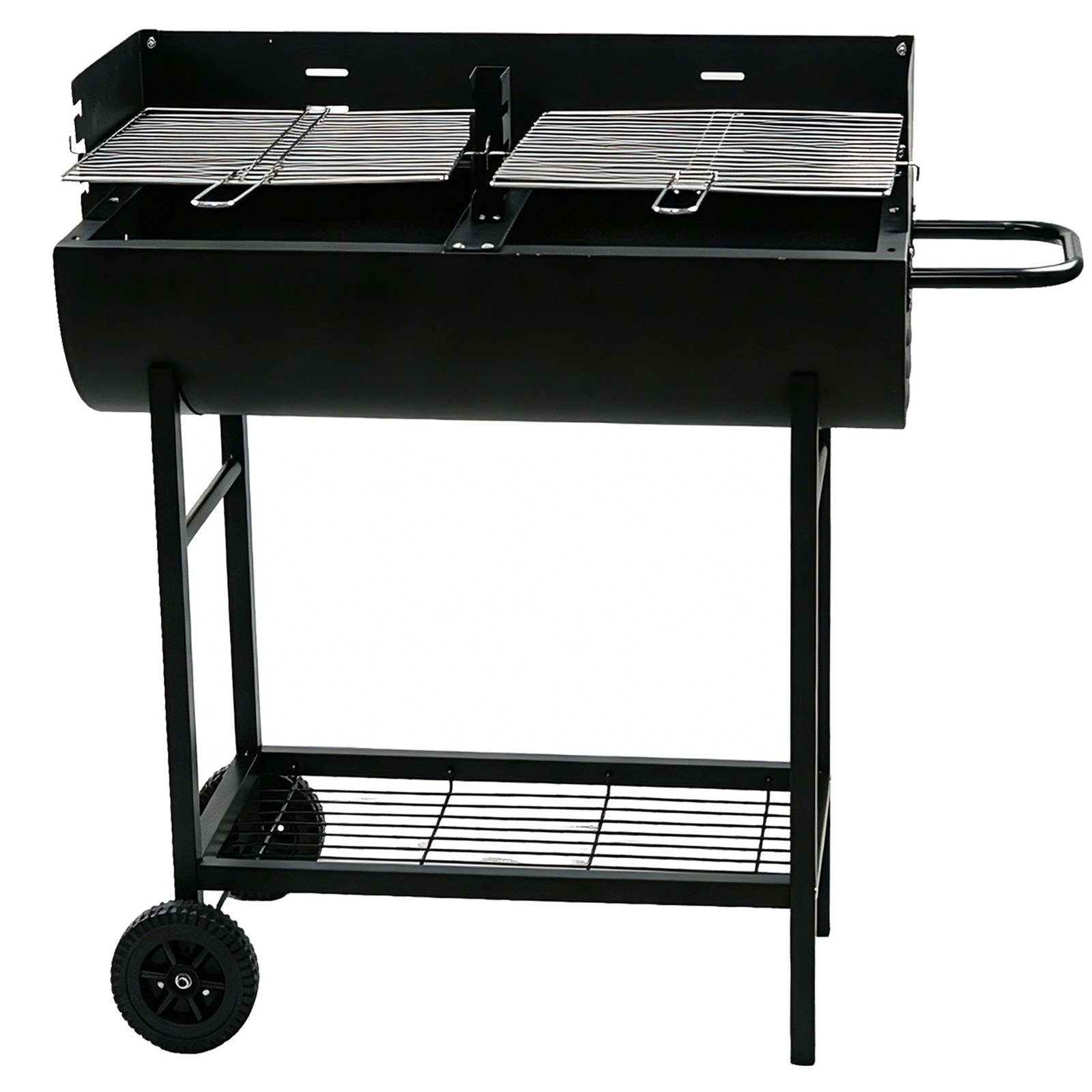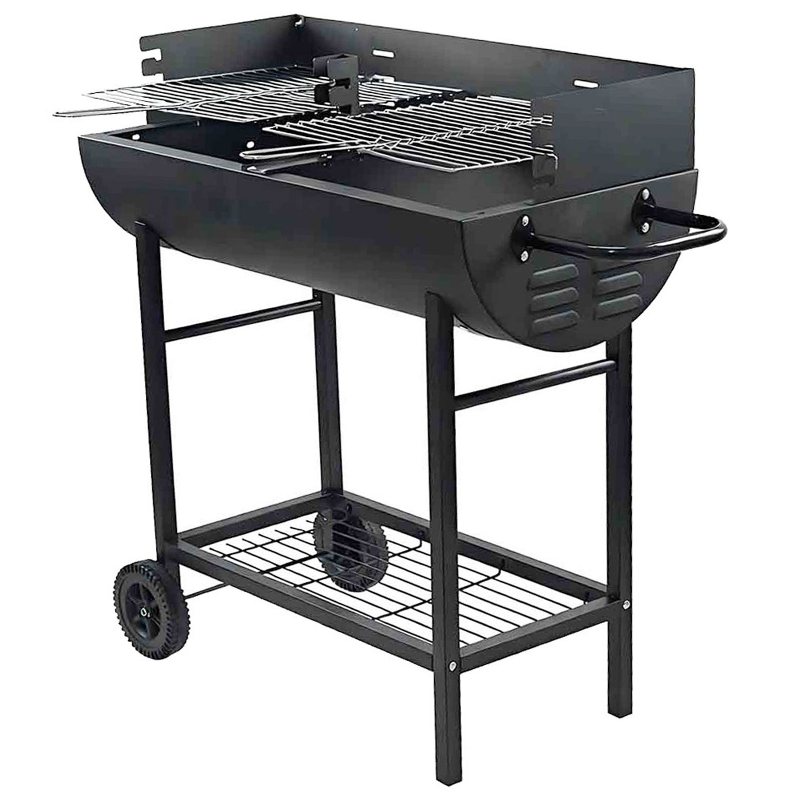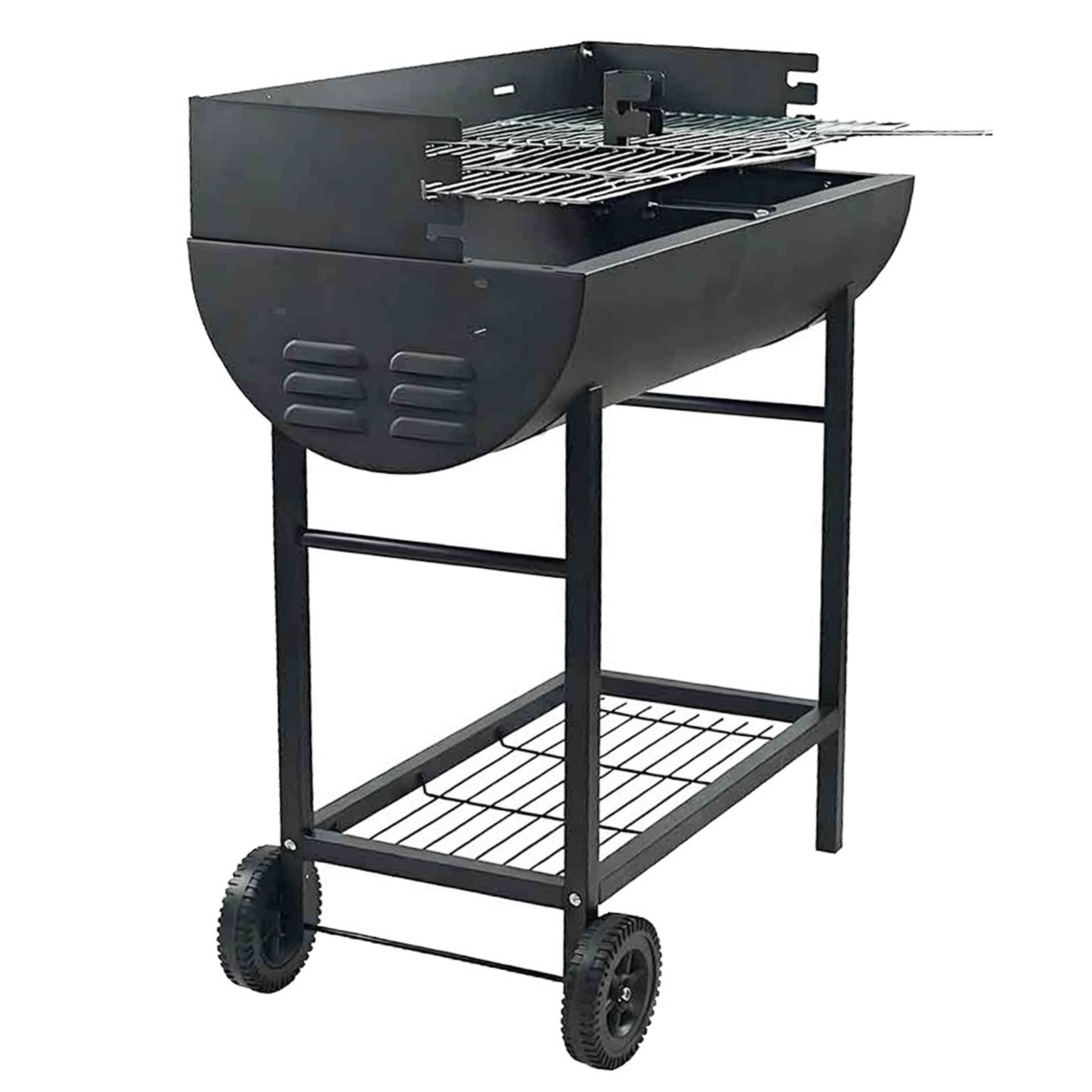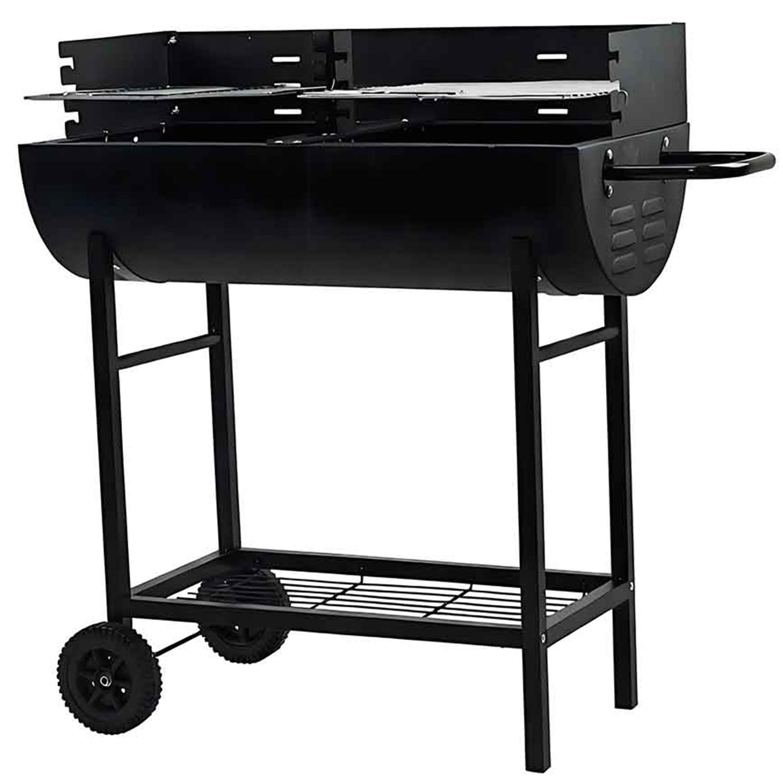 Charcoal BBQ Grill Half Barrel Dual Zone 2 Cooking Areas Garden Trolley BBQ