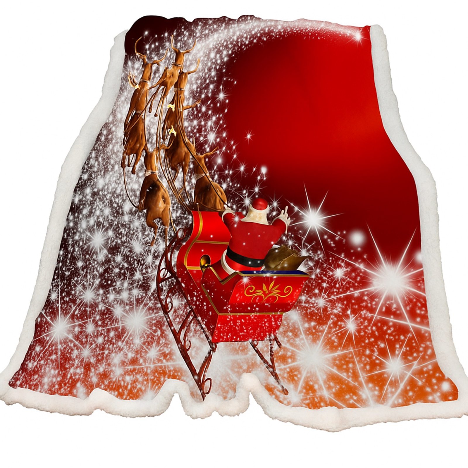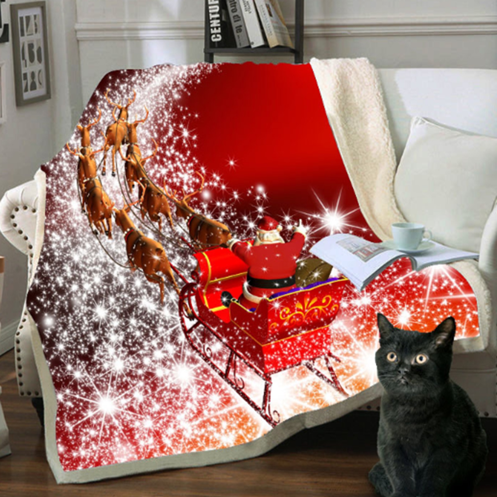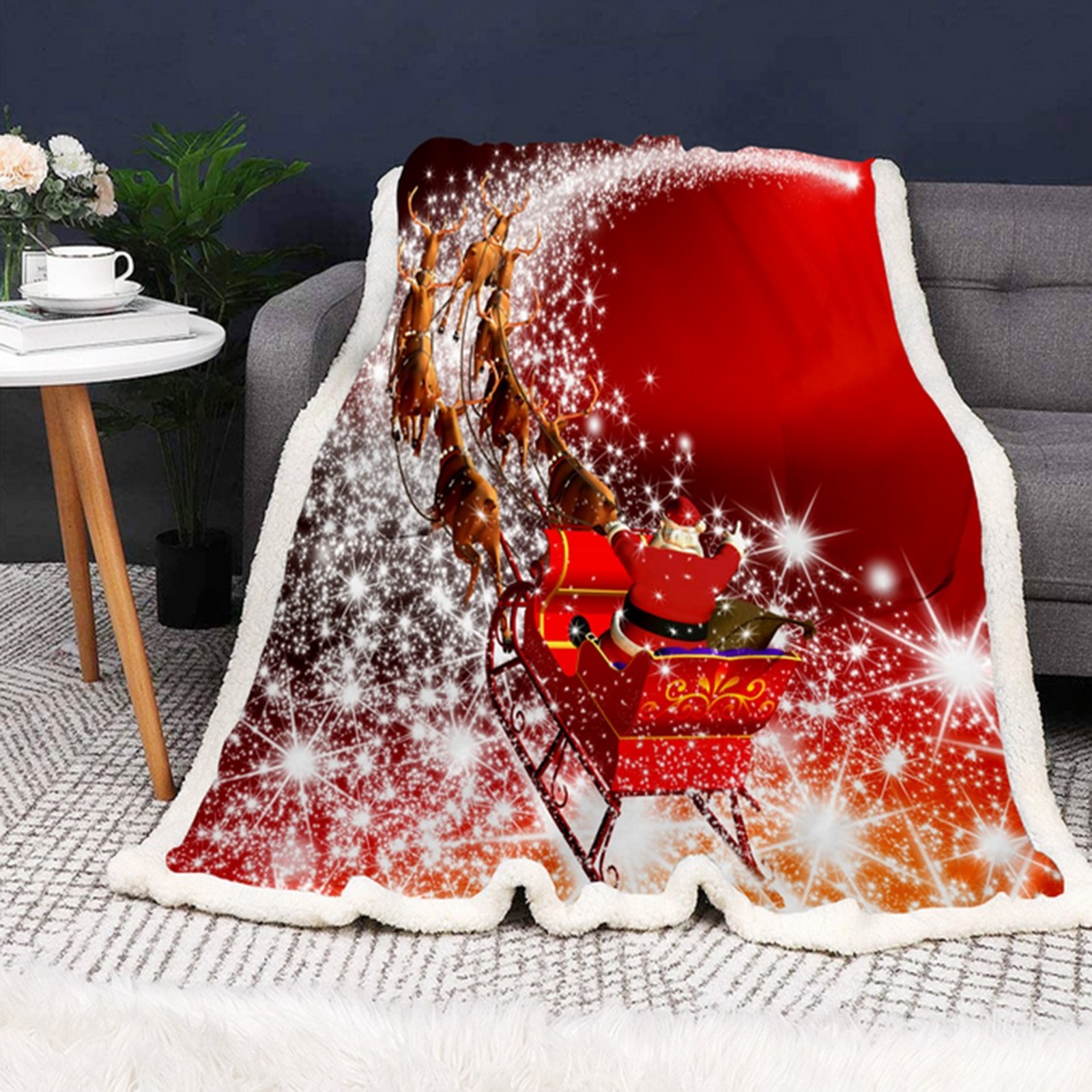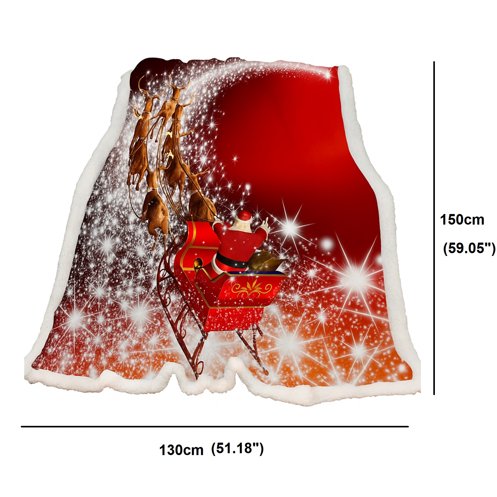 Christmas Sleigh Fleece Blanket Soft Warm Double Layer Flannel Large Festive Winter Xmas Throw Sofa Bed Couch 130 x 150cm