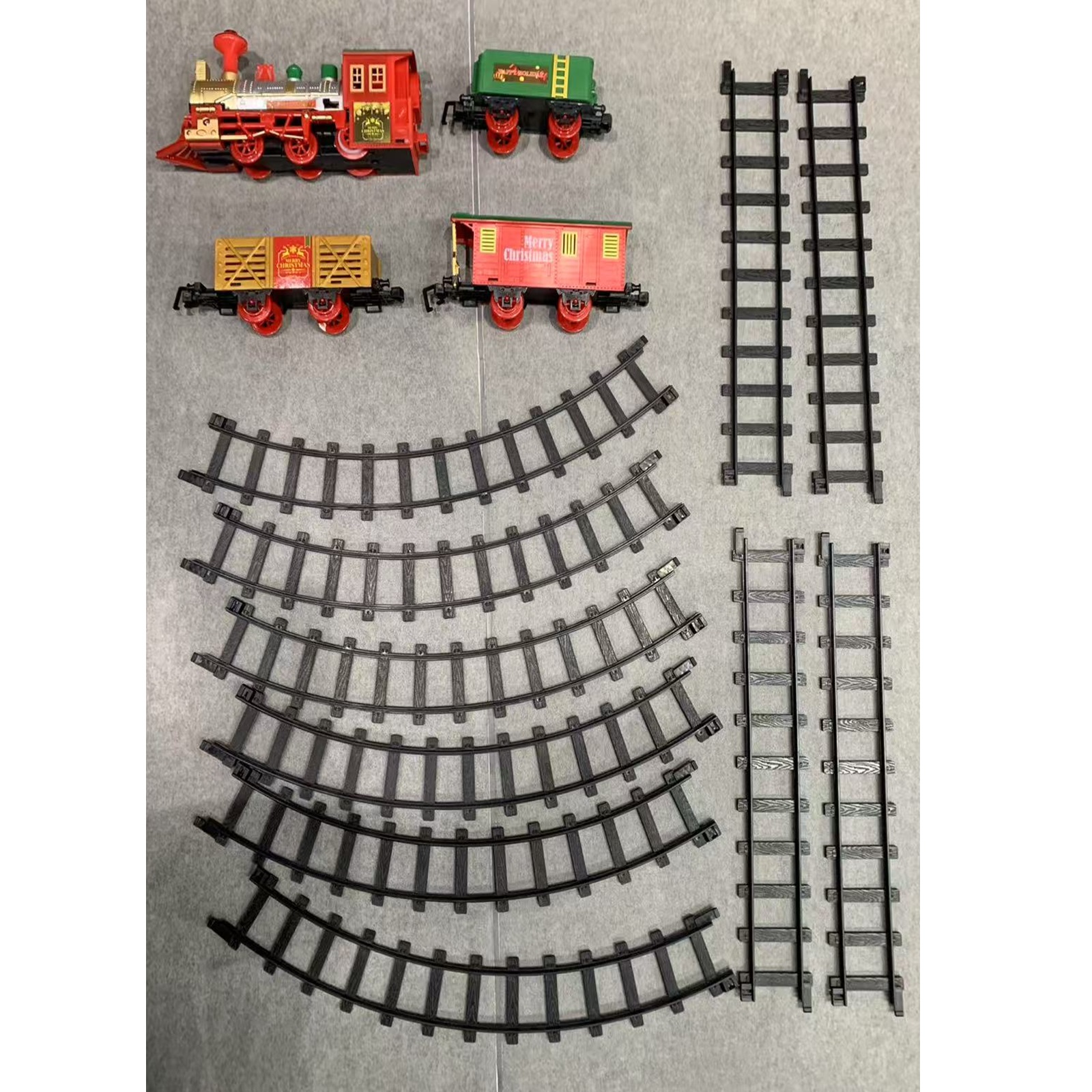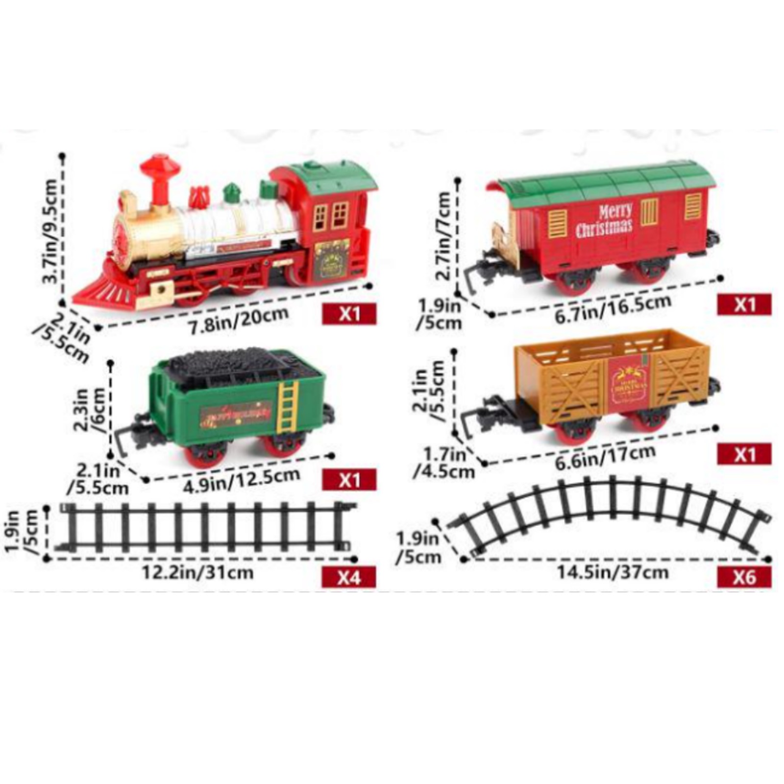 Celebrate the holiday season with this charming Christmas Train Set, perfect for adding a touch of festive magic to your home. This set includes a battery operated train and tracks that can circle around your Christmas tree, creating a touch of winter wonderland.