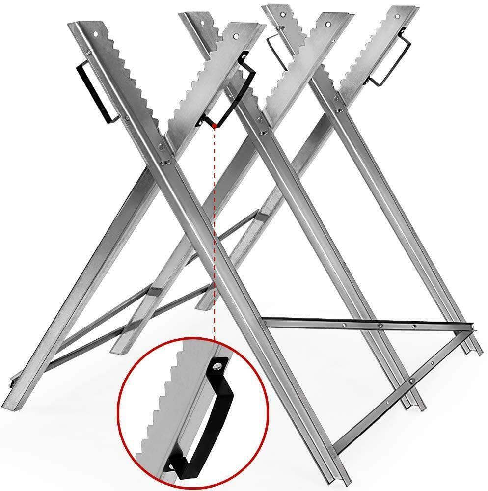 Folding Chain Saw Horse Log Holder Sawing Cutting Stand Galvanized Metal Trestle Summary