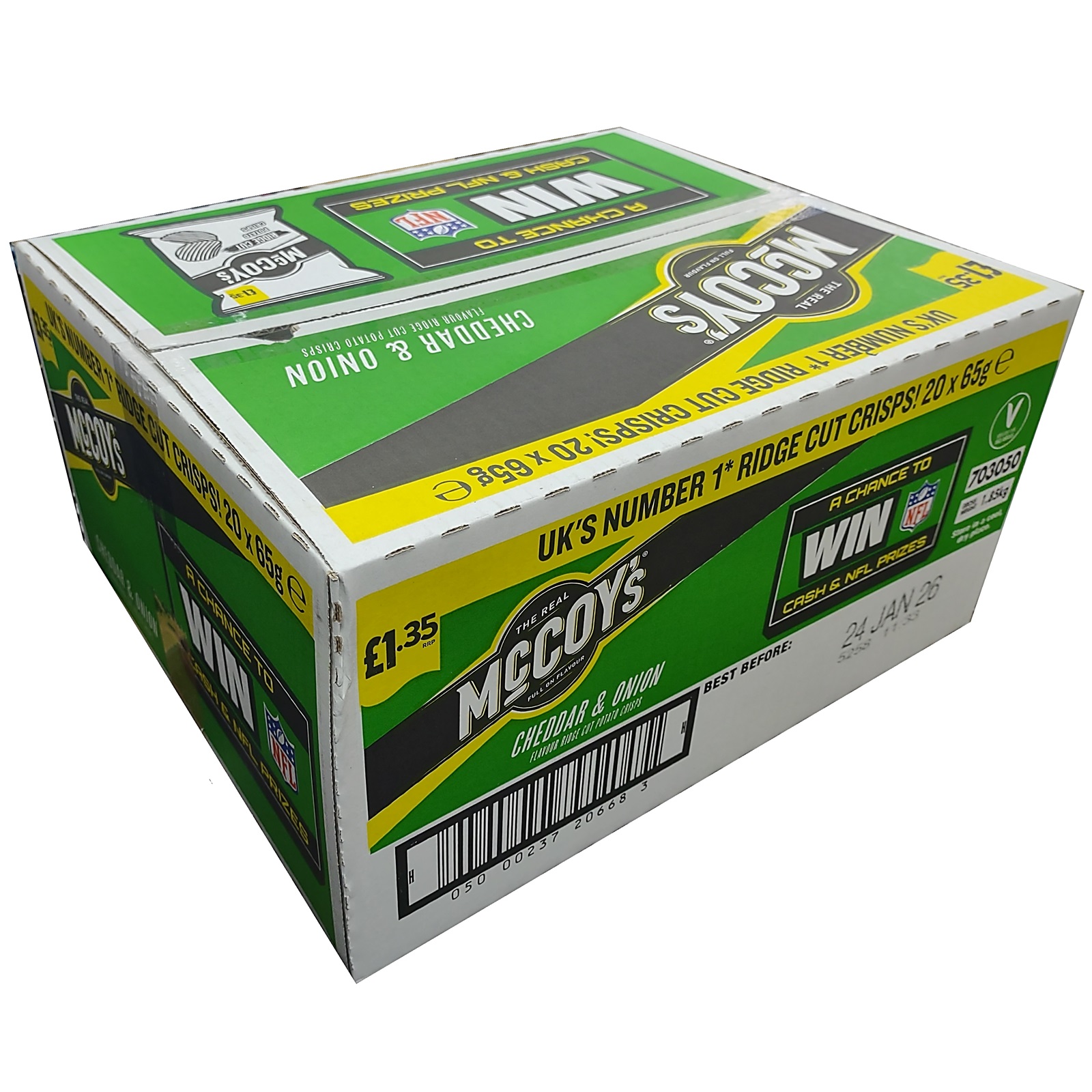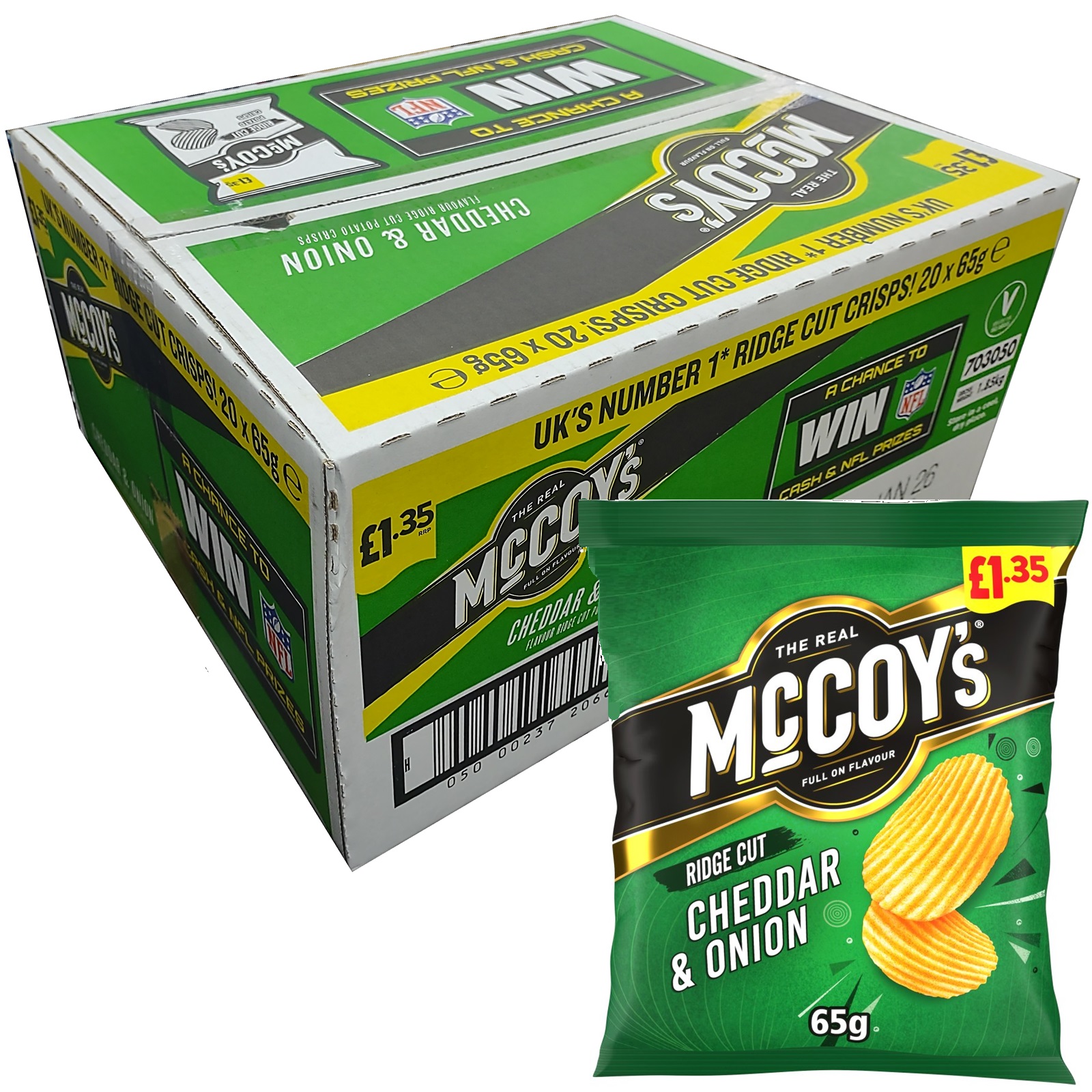 McCoys Cheddar And Onion Flavour Potato Crisps Ridge Cut Box Case Pack of 20 x 65g Sharing Bag