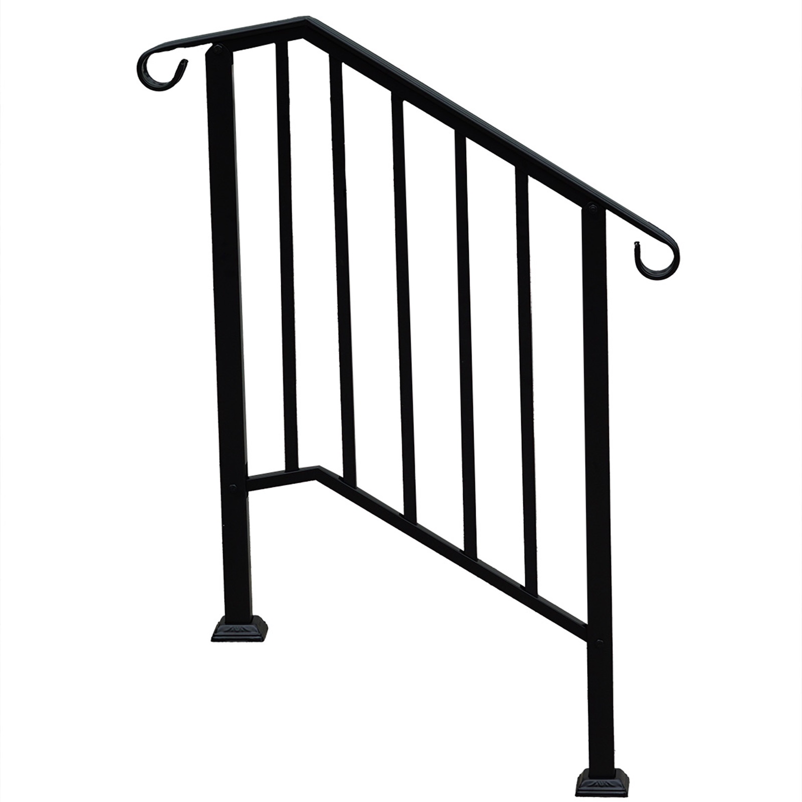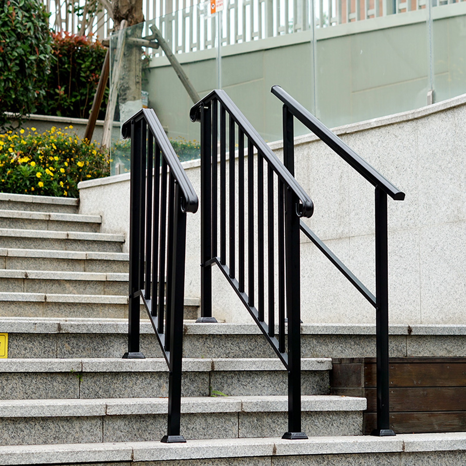 Outdoor Black Steel Handrail 2 Steps Garden Stairs Safety Grab Bannister Rail Summary
