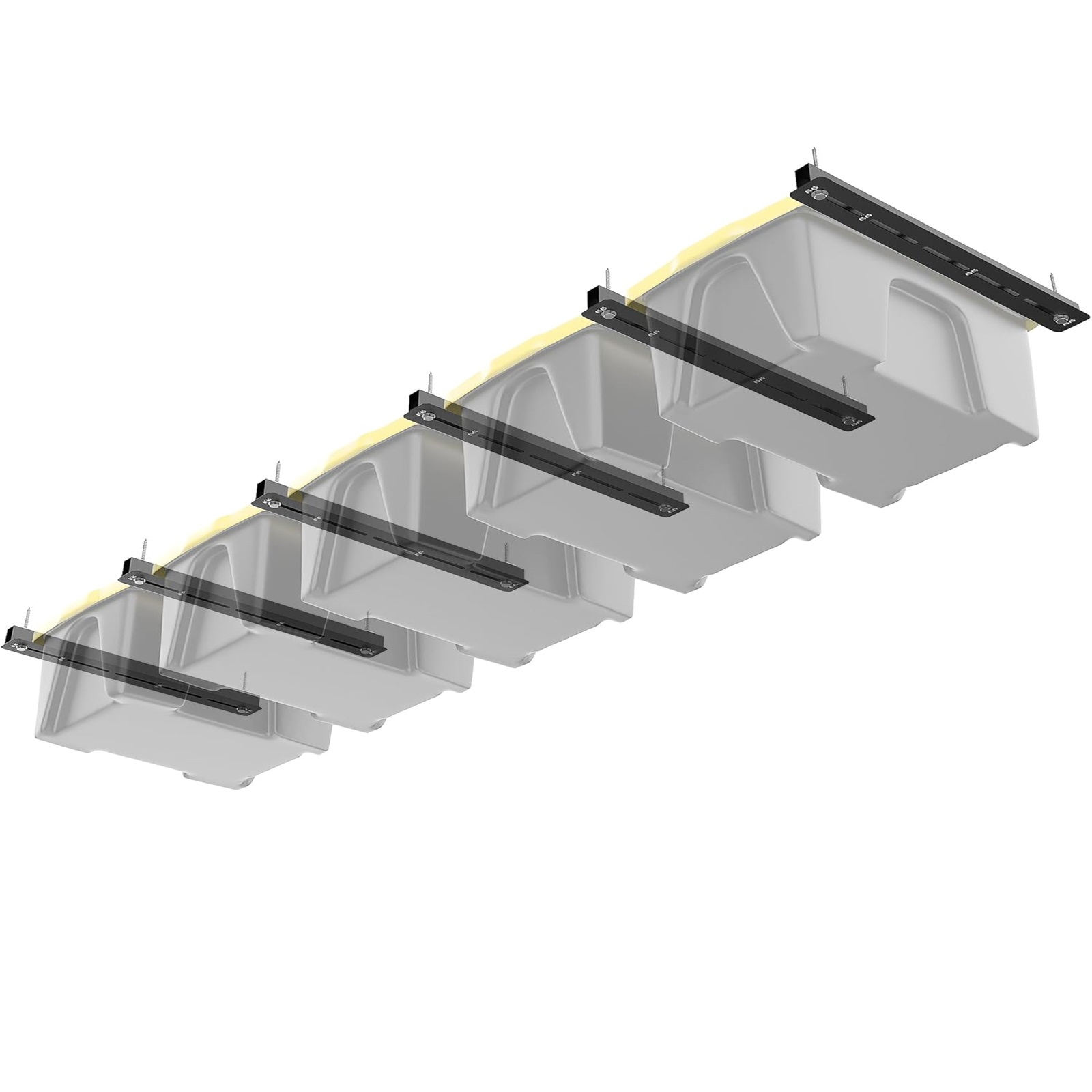 Gr8 Home 6 Piece Metal Overhead Storage Utility Bin Rack Brackets Garage Ceiling Tote Box Container Organiser Support Rails Shelving System Holds Upto 5 Containers Not included