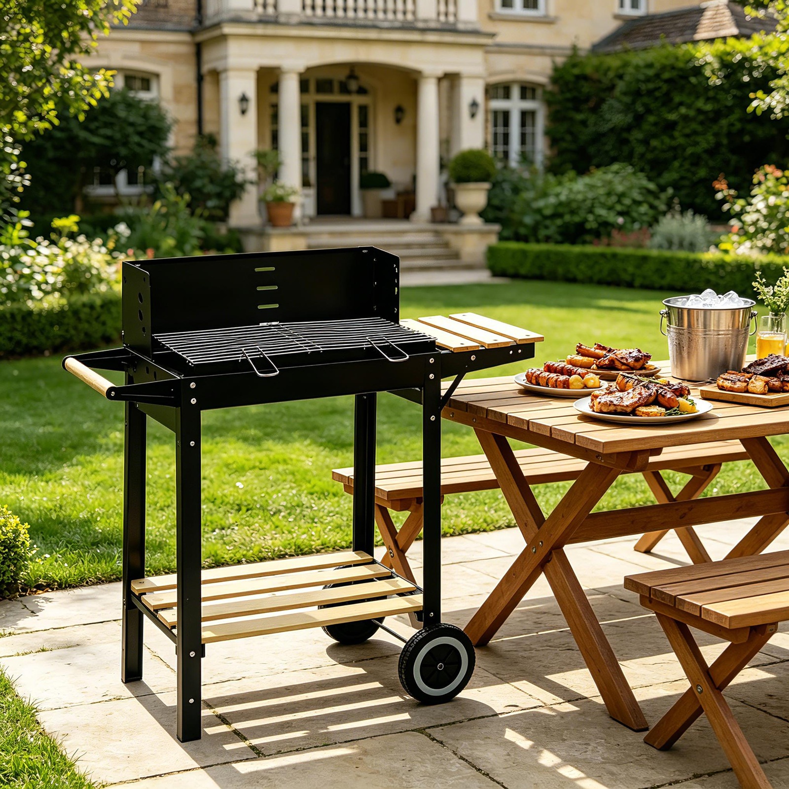 - Portable Charcoal BBQ Grill Outdoor Rectangular Cooker with Side Shelf Barbecue