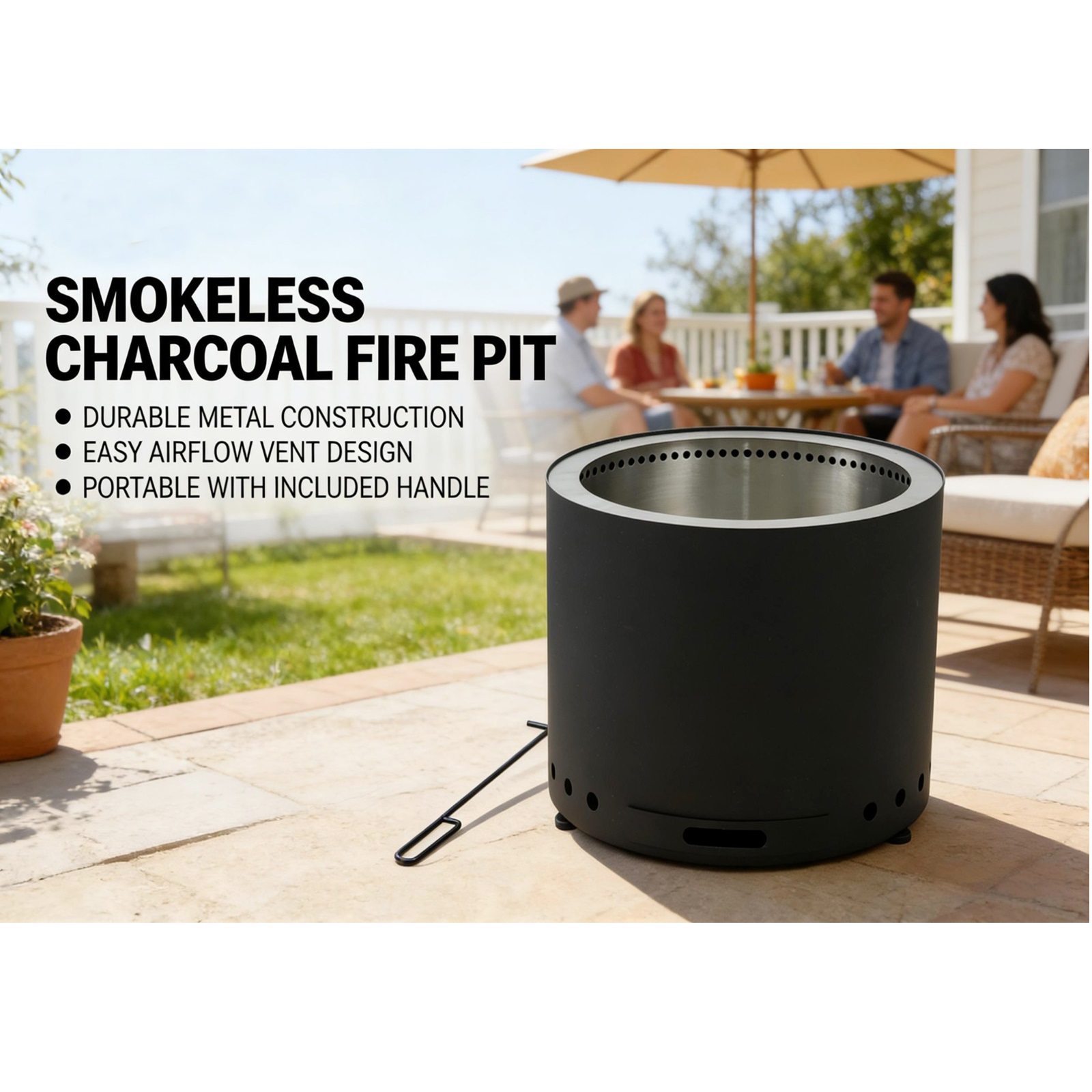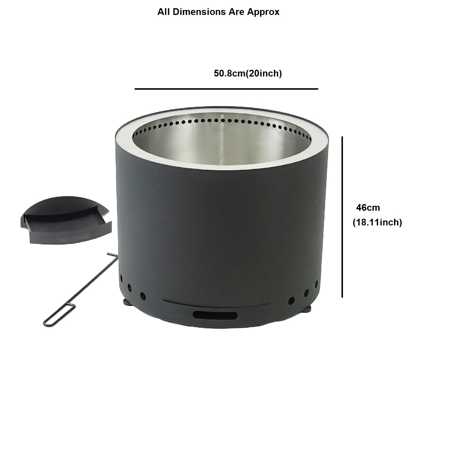 - Smokeless Fire Pit Stove 20” Stainless Steel Outdoor Patio Garden with Ash Tray