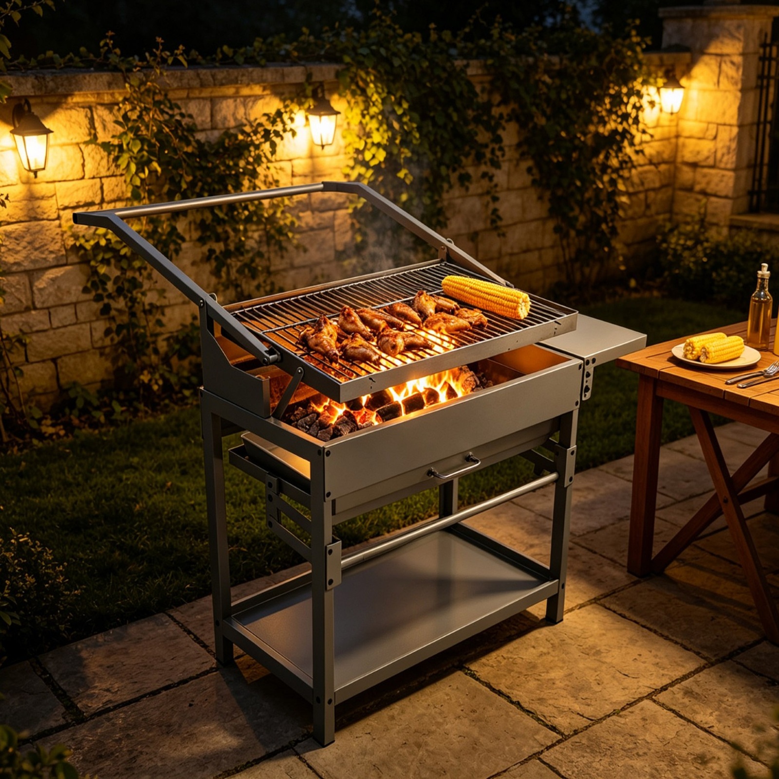 - Stainless Steel Charcoal BBQ Grill Flip Grate Side Shelf Outdoor Barbecue XL