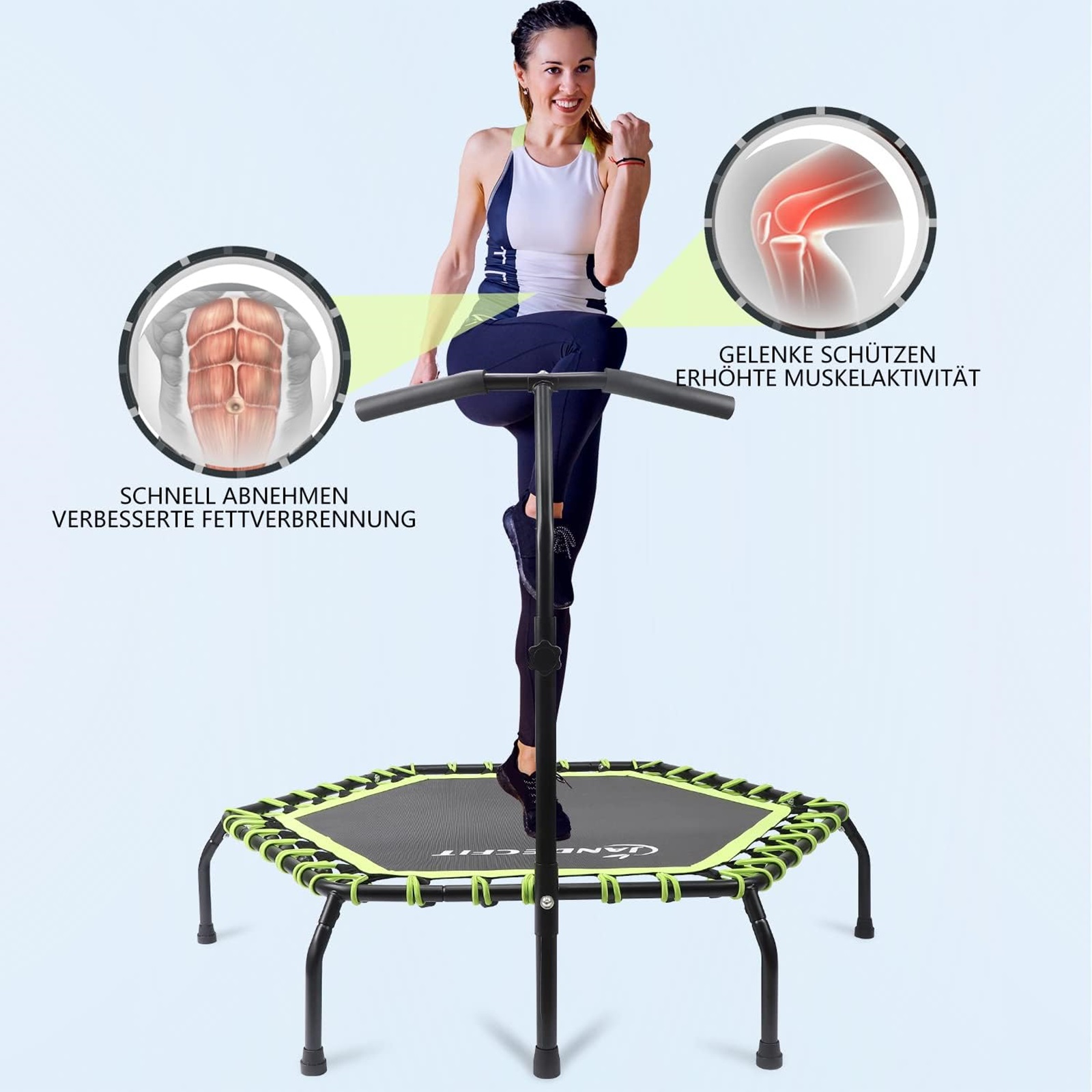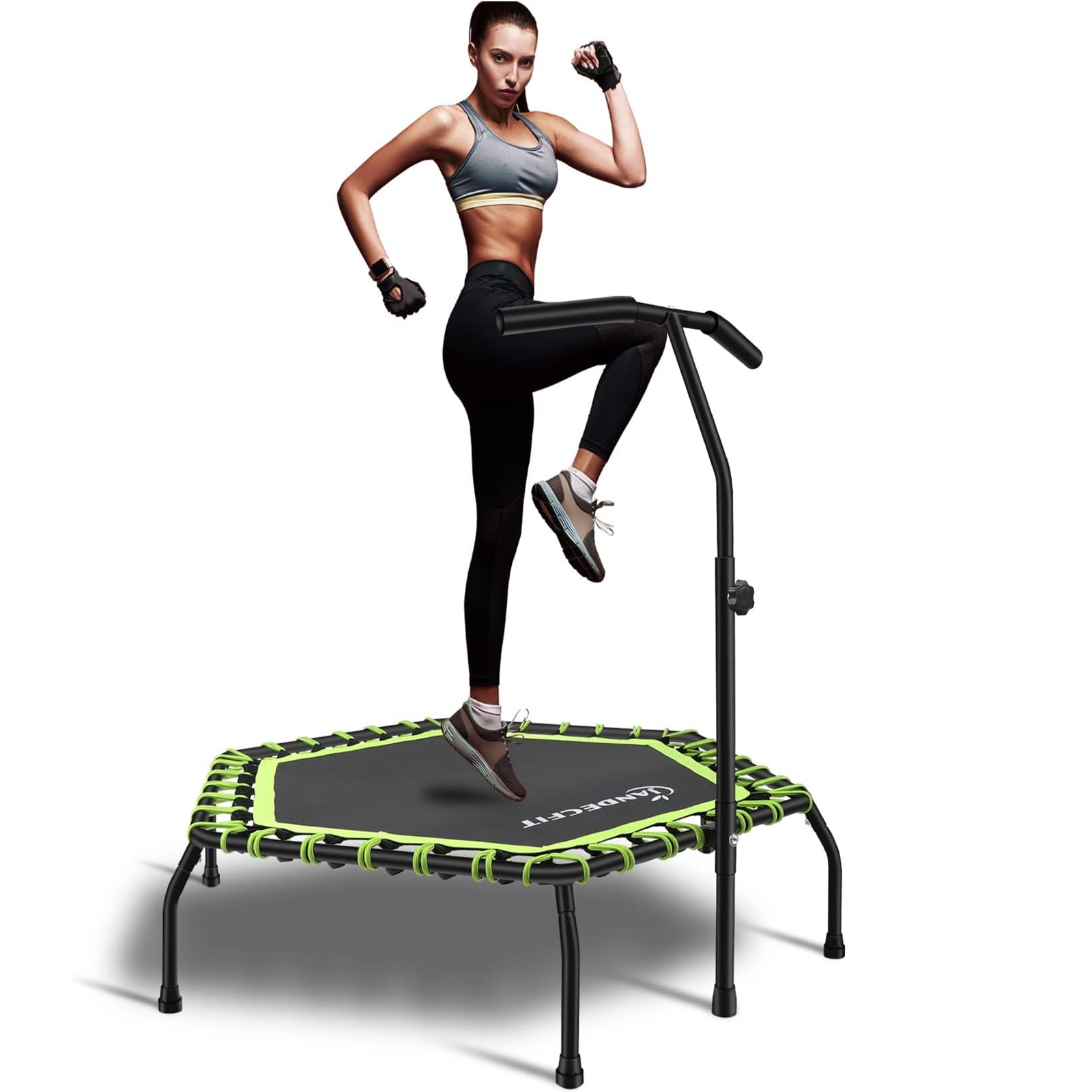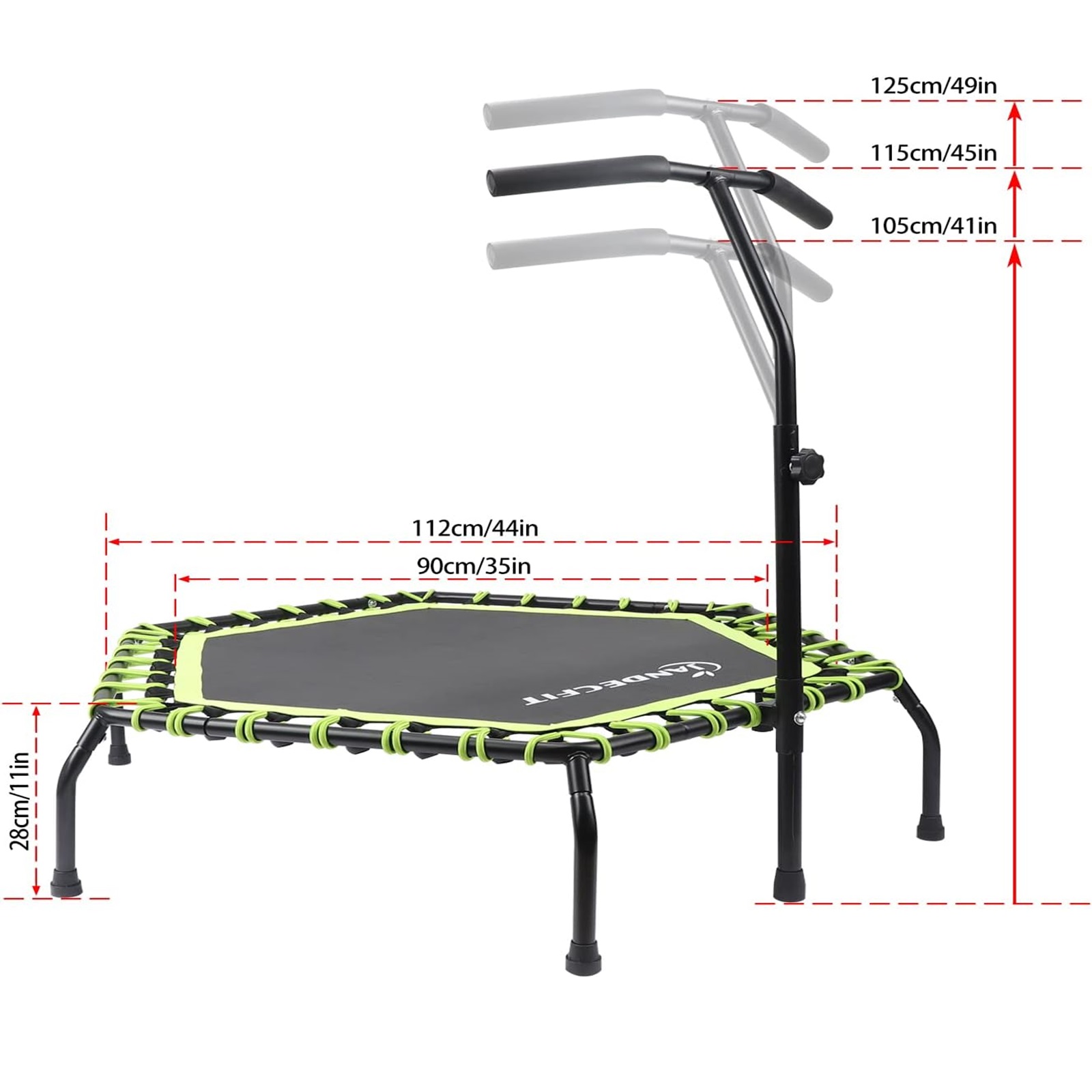 - Trampoline Bungee Jumper 44" Hexagon Rebounder Green With Adjustable Handle Bar
