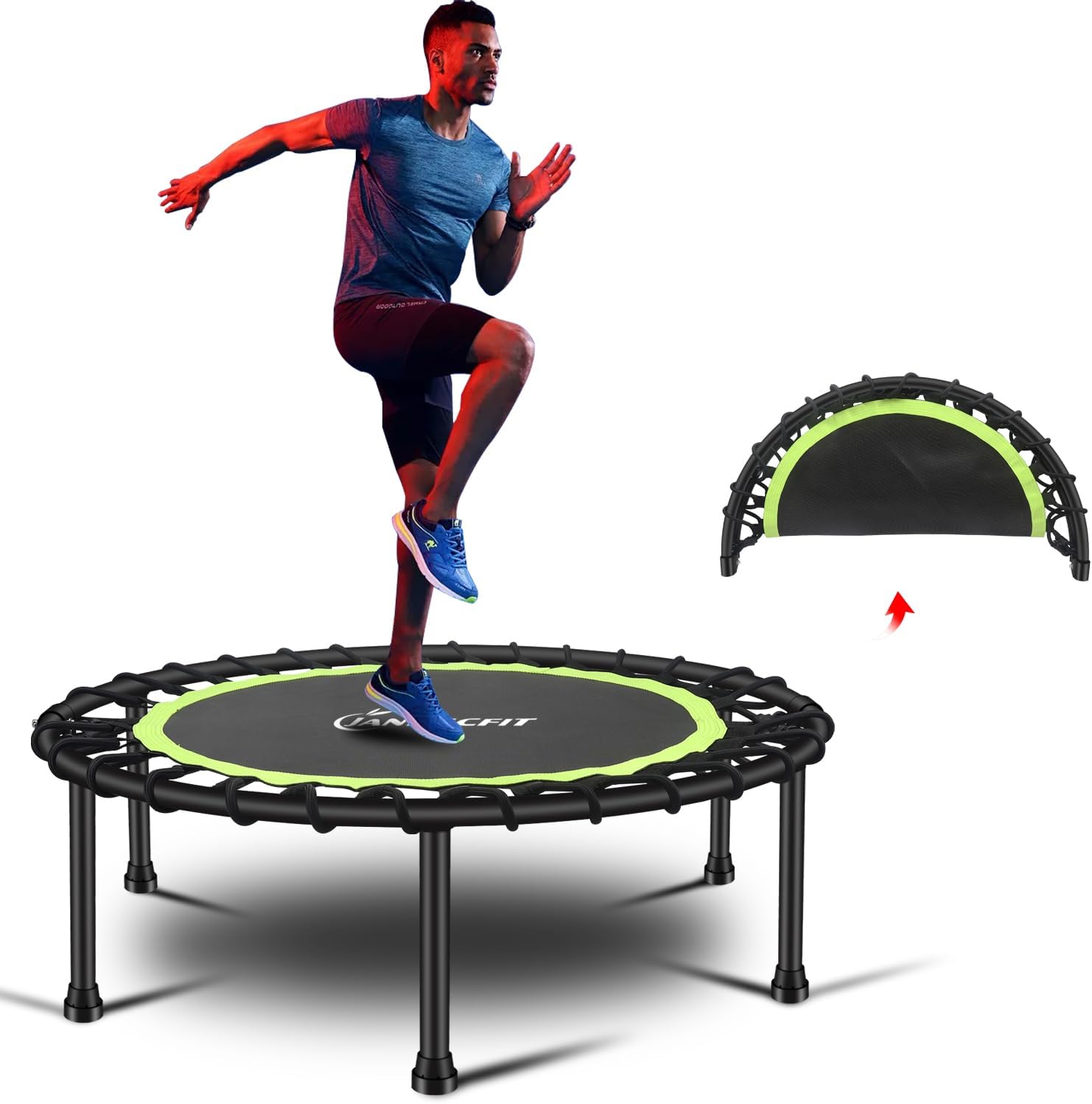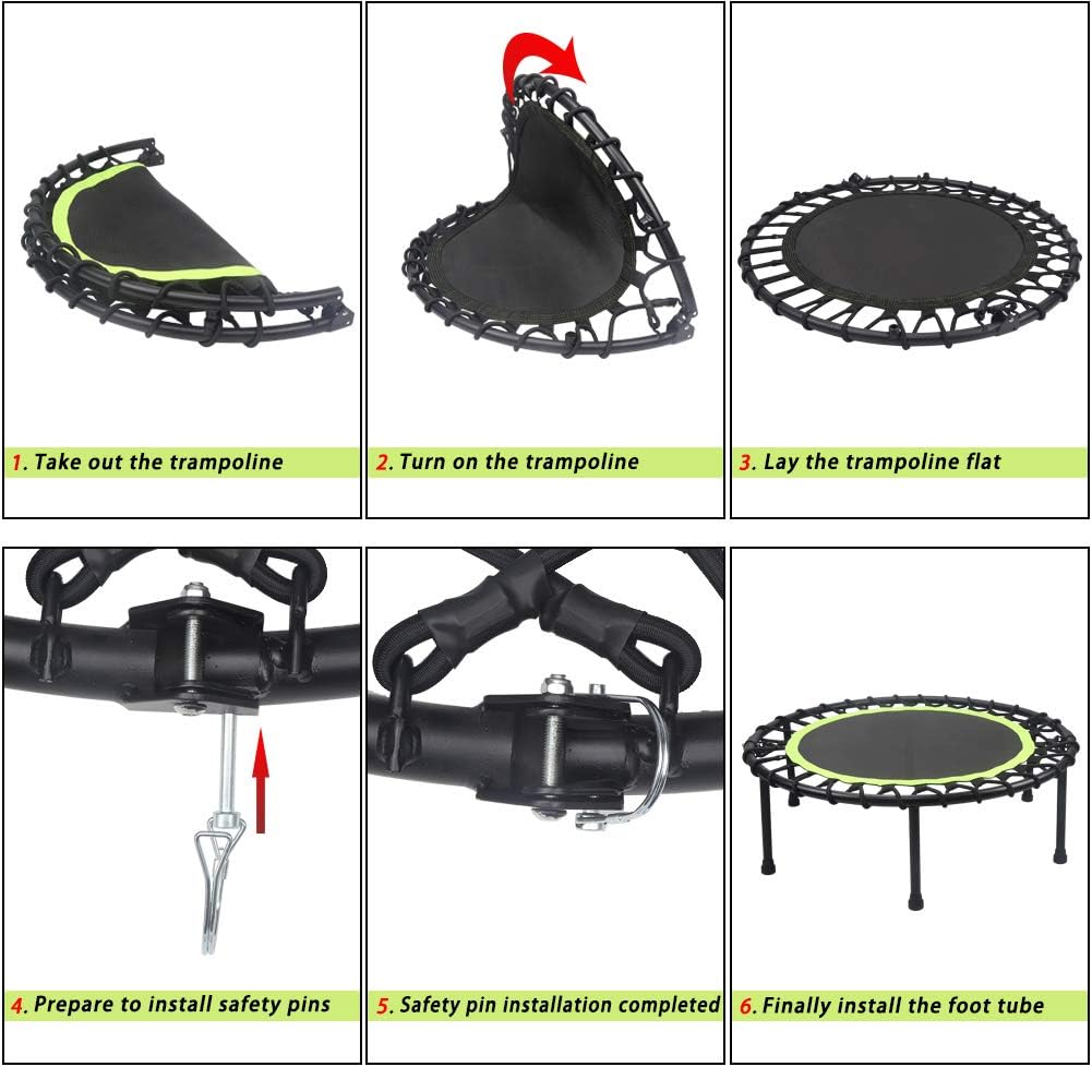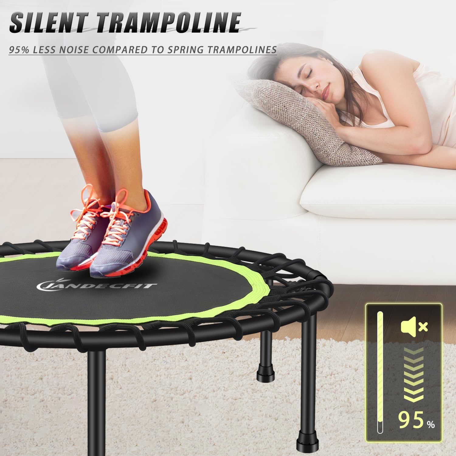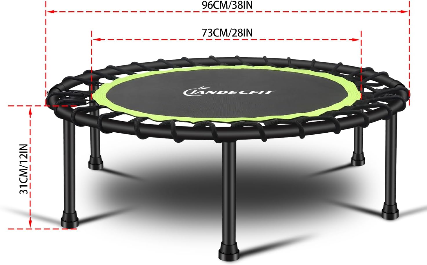 Jandecfit Foldable Fitness Trampoline,38" Silent Mini Rebounder Trampoline Best Aerobic Exercise Fitness Equipment in the Gym or Home Outdoor Bungee Rope Design System Max Limit 150 KG Black Green