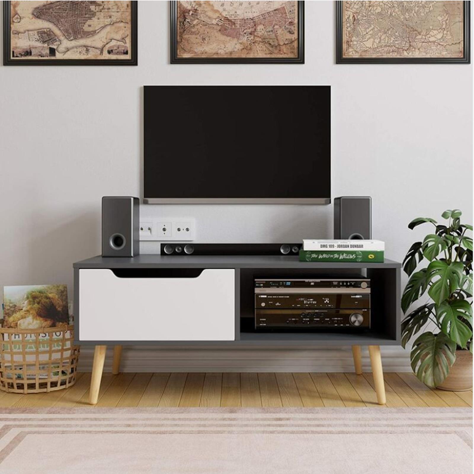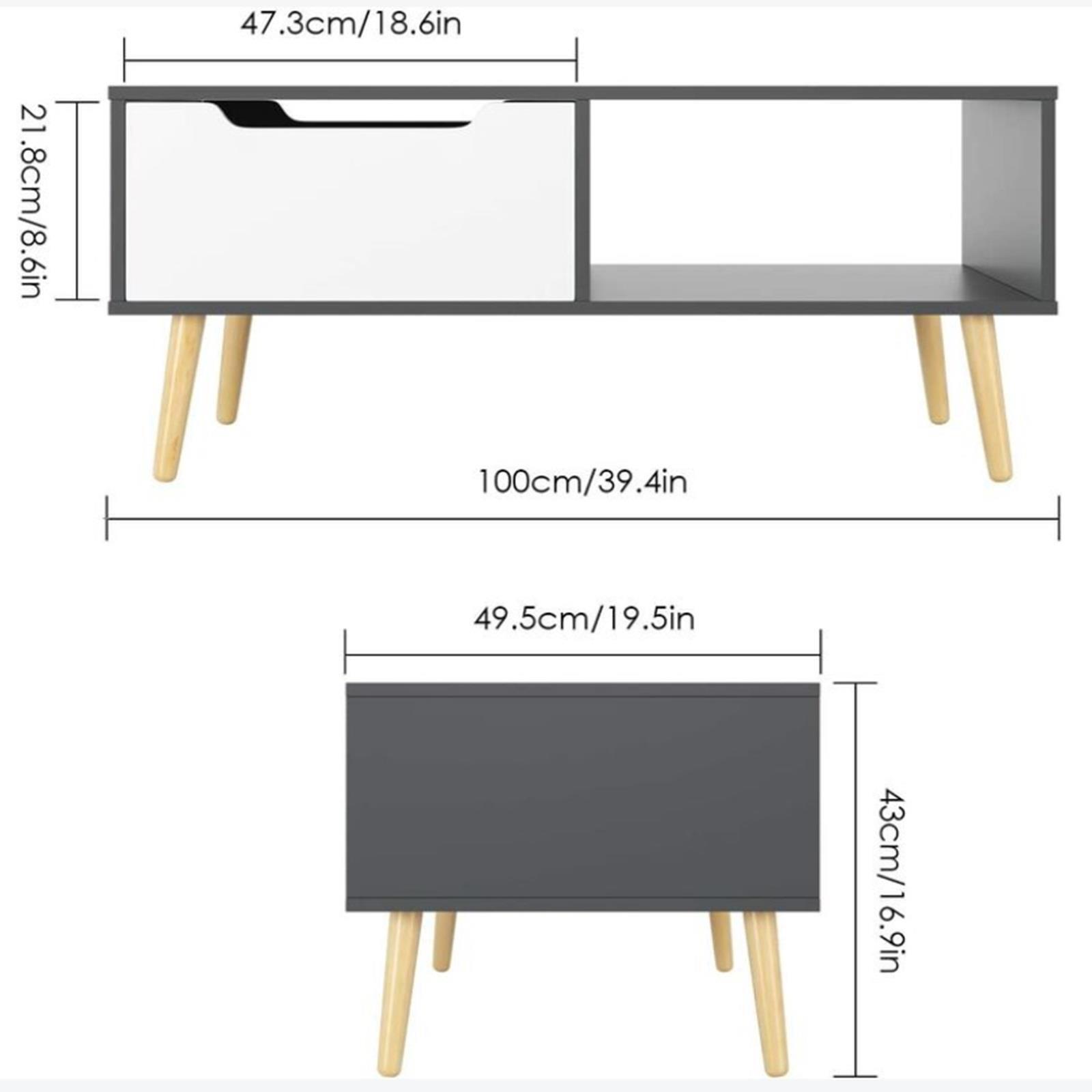- Wooden Grey White Scandinavian Coffee Table With Legs Storage Compartment Drawer